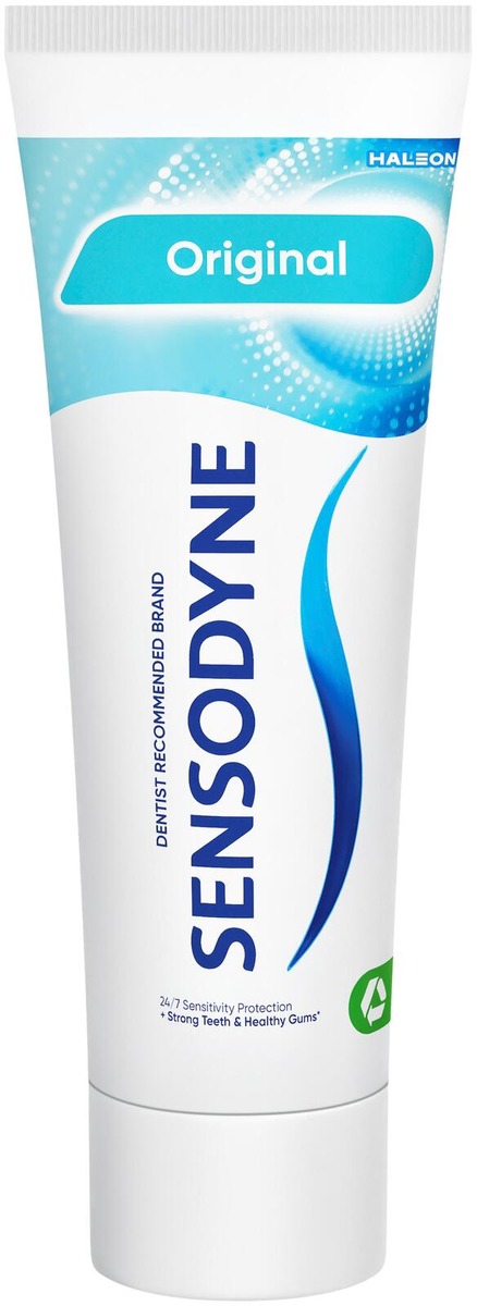 Sensodyne Original on päivittäiseen käyttöön tarkoitettu hammastahna, joka kahdesti päivässä käytettynä suojaa vihlontaa vastaan ja lievittää vihlontaa kliinisesti osoitetusti. Kahdesti päivässä käytettynä Sensodyne Original -hammastahna antaa ympärivuorokautista suojaa vihlontaa vastaa ja puhdistaa tehokkaasti. Sisältää fluoria, joka vahvistaa hammaskiillettä ja ehkäisee reikiintymistä. Sensodyne Original -tahnassa on raikas mintun maku.