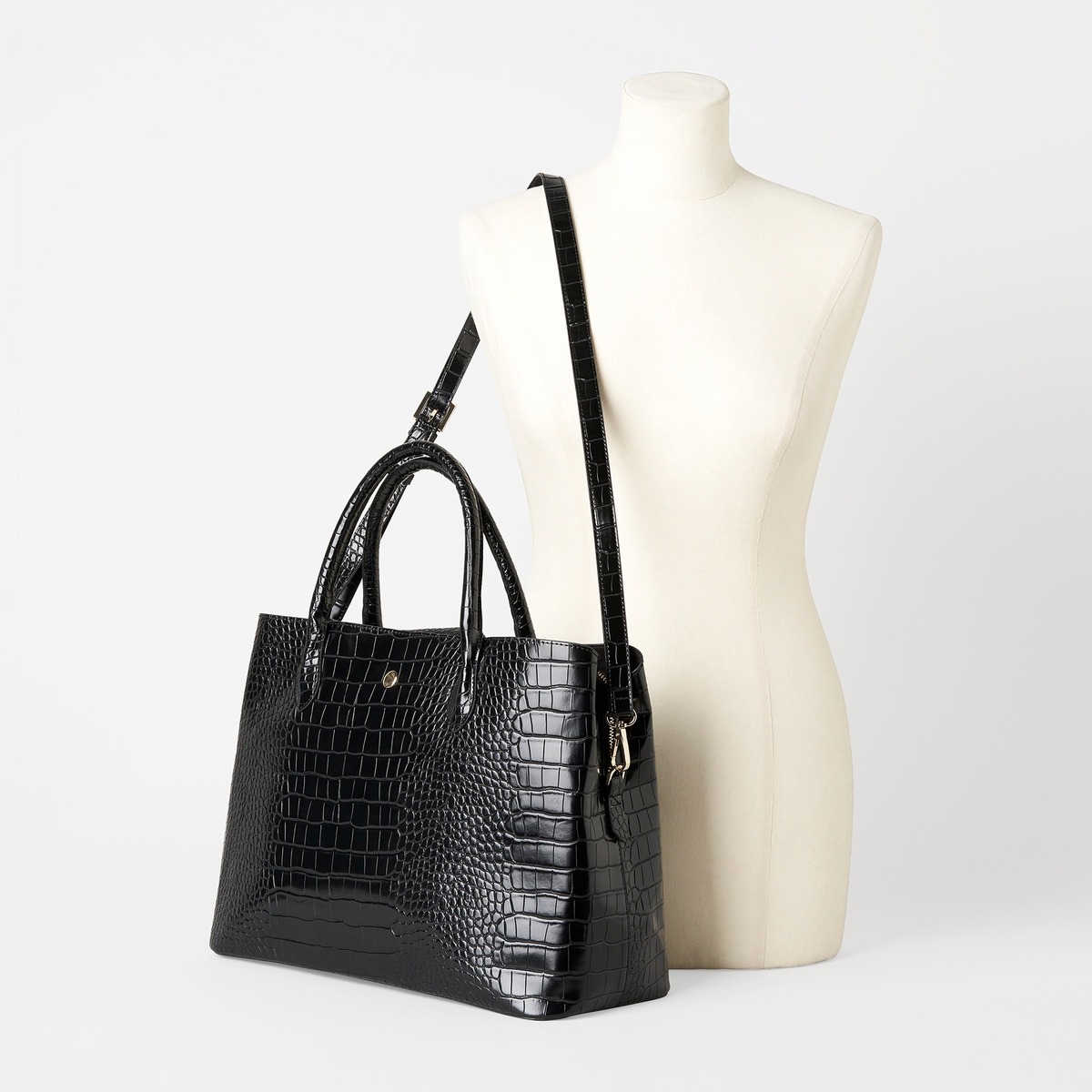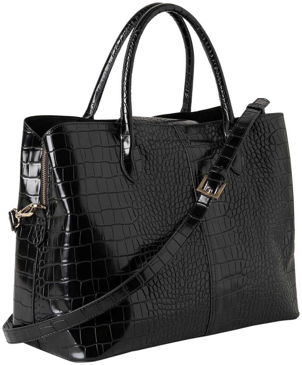 Åhléns Woman -brändin tietokonelaukku Kay on tyylikäs ja käytännöllinen ratkaisu modernille naiselle, joka haluaa suojata kannettavansa tyylillä. Tämä musta tietokonelaukku on valmistettu 100% polyuretaanista, mikä tekee siitä kestävän ja helppohoitoisen. Laukun krokotiilikuosi antaa sille ainutlaatuista ilmettä, joka erottuu joukosta. Laukun koko on sopiva useimmille kannettaville tietokoneille, ja se tarjoaa kätevän tavan kantaa ja suojata arvokasta elektroniikkaa arjen kiireessä.