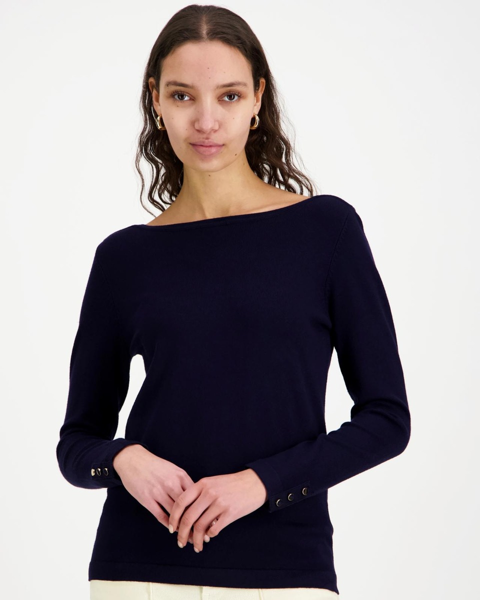 Aventuran neulepusero venepääntiellä ja napeilla hihansuissa. Koossa M rinnanympärys noin 94 cm, pituus olalta helmaan noin 62 cm. Materiaali miellyttävää ja hieman joustavaa viskoosi-polyamidia.
