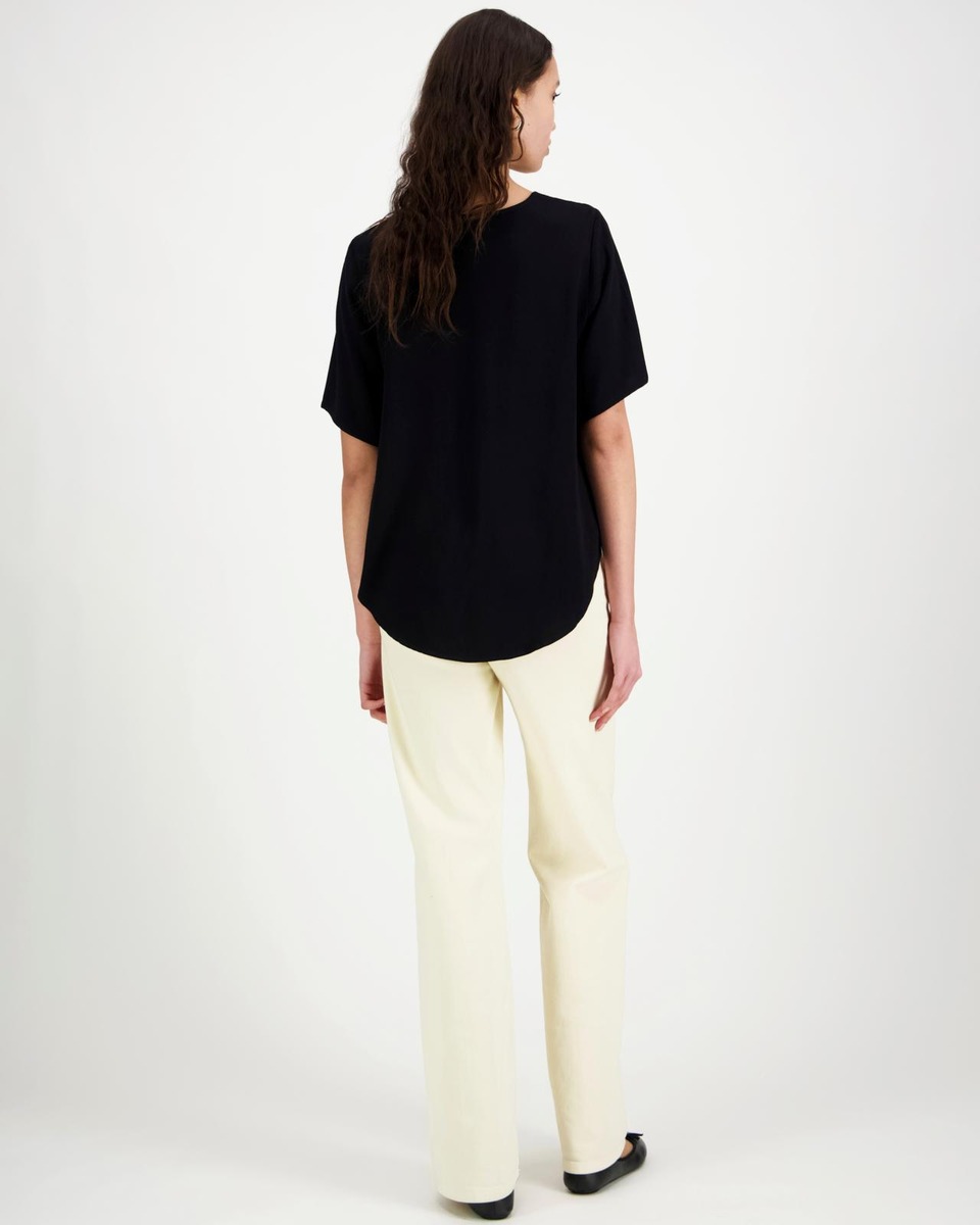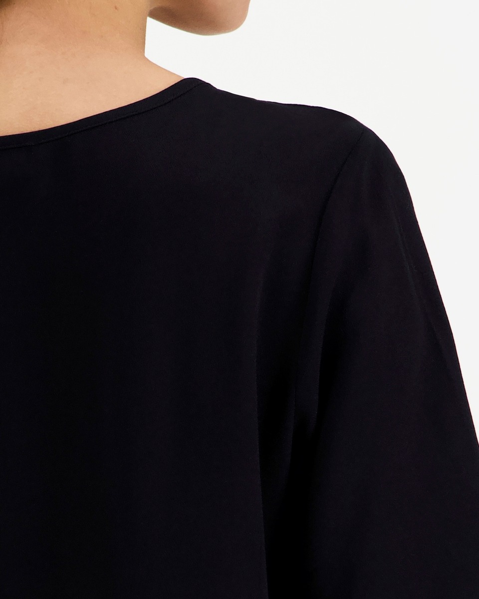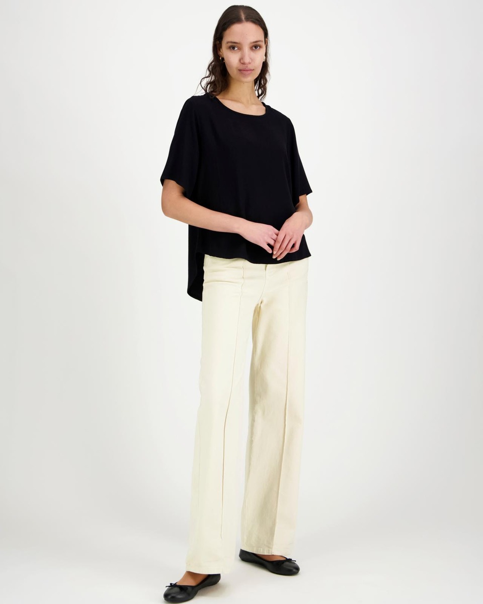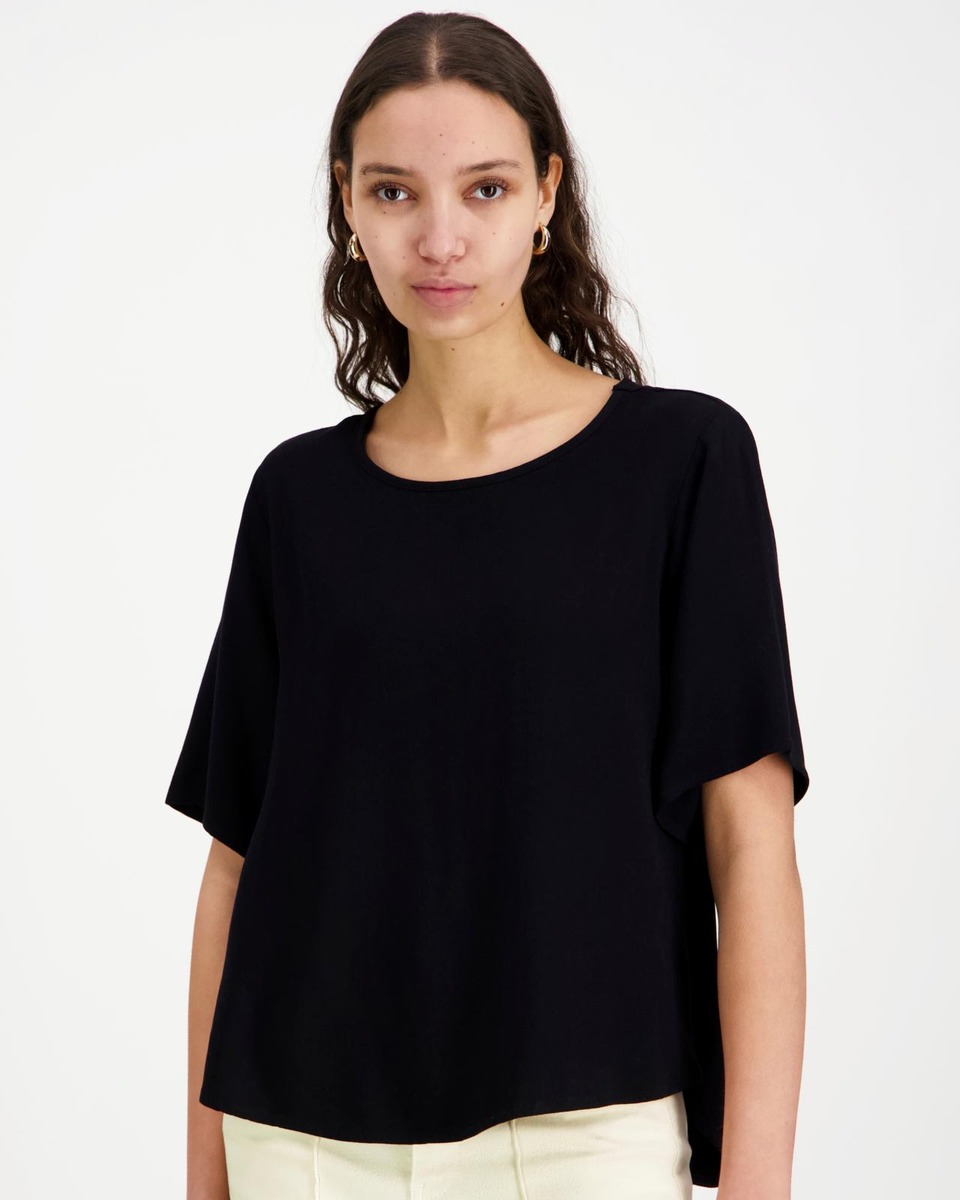 Aventuran lyhythihainen pusero on valmistettu miellyttävän tuntuisesta ja kauniisti laskeutuvasta viskoosista. Puserossa on pyöristetty helma ja se on takaa hieman eutosaa pidempi. Koossa 38 rinnanympärys noin 102 cm ja pituus olalta helmaan edessä noin 63 cm, takaa noin 73 cm.