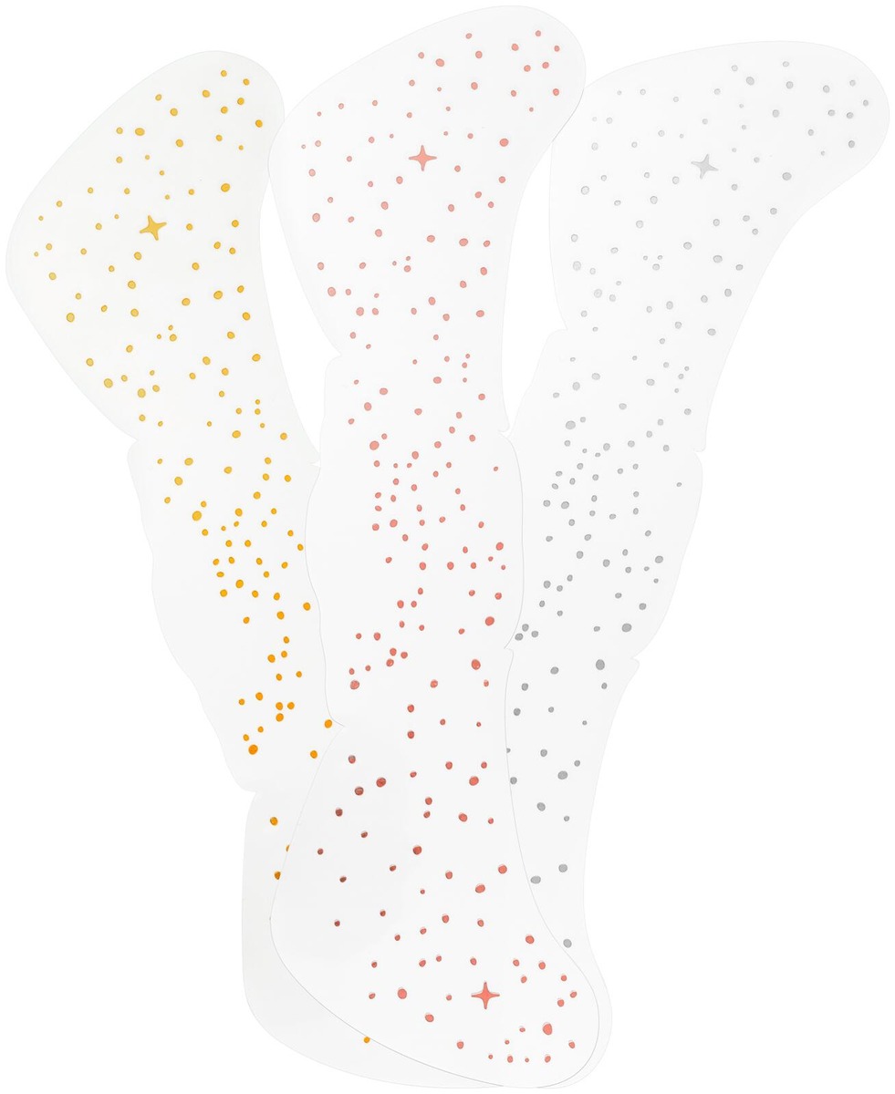 Levitä ripauksen taikaa poskillesi essencen get the glaze! pisamatatuoinneilla 01 Get it Sprinkled! Kolme ruusukullan, kullan ja hopeanväristä tatuointiarkkia antavat kasvoillesi leikkisän, hohtavan hehkun muutamassa sekunnissa. Halusitpa sitten luovan arkiviimeistelyn tai rohkean festivaalityylin, nämä väliaikaiset piasamat tuovat tyyliisi ilmeikkään ja hehkuvan korostuksen. Tulos? Säteilevä, luonnollisen näköinen kimallus, joka kestää. Nämä helposti levitettävät ja yhtä helposti poistettavat kimaltelevat pisamat antavat sinun korostaa kasvojasi viehättävällä ja iloisella tavalla – missä ja milloin tahansa.