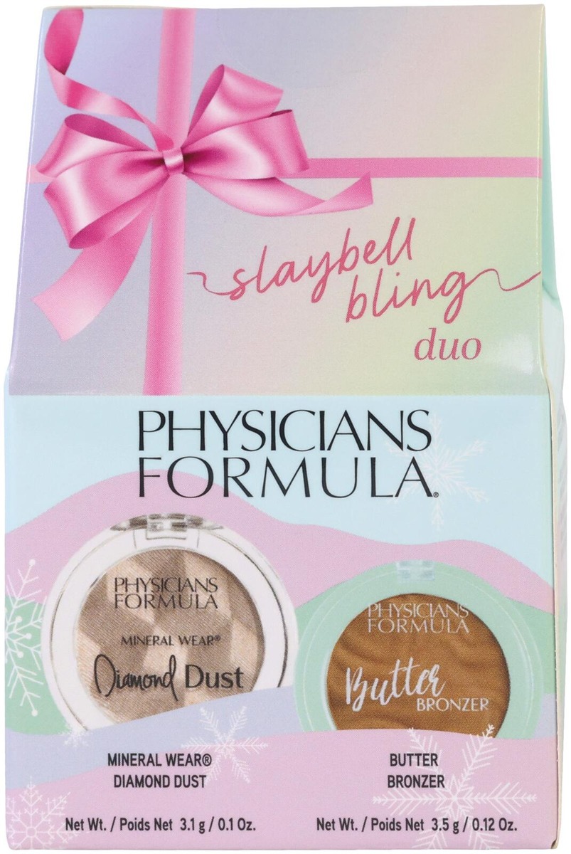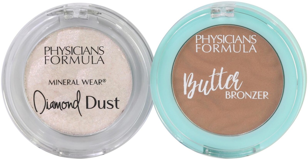 Physicians Formulan tuotepakkaus Staybell Bliong sisältää suositun Butter Bronzer aurinkopuuterin ja Mineral Wear Diamond Dust hehkupuuterin kätevinä matkakokoisina tuotteina.