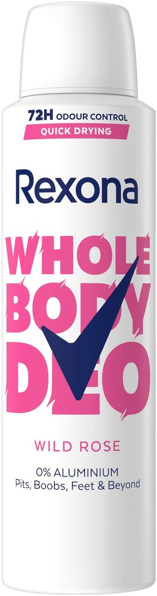 Pidä koko keho raikkaana Rexona Wild Rose All Body Deodorantilla. Tämä alumiiniton deodorantti naisille tarjoaa 72 tunnin hajukontrollin, jotta voit ylittää rajasi. \ All Body Deodorantimme sisältää Rexonan patentoidun Body Adapt -teknologian, joka pysäyttää hajun ennen kuin se ehtii alkaa. Tämä deodoranttisuihke naisille tuoksuu raikkaalta ja kukkaiselta, klassisen naisellisella vivahteella. \ Sen nopeasti kuivuva koostumus jättää vähemmän jäämiä iholle ja tuntuu kevyeltä ja virkistävältä, tarjoten lähes välittömän raikkauden tunteen. \ Käytä sitä missä tahansa tarvitset hajunhallintaa – kainaloissa, rintakehällä, jaloissa ja muualla, mutta vältä kasvoja. Vältä kosketusta silmiin, haavoihin ja vaurioituneeseen ihoon. Lopeta käyttö, jos ilmenee ihottumaa tai ärsytystä. \ Jokaisella kehon osalla on ainutlaatuinen mikrobiomi, mikä saa kehon hajun vaihtelemaan eri alueilla. Vain Rexona All Body Deodorant mukautuu sinuun – missä tahansa sitä tarvitset – jotta voit ylittää rajasi. \ All Body Deodorant -suihkeemme peittävät laajoja alueita ja ovat kätevä valinta. \ Rexonalla haluamme inspiroida kaikkia liikkumaan enemmän ja menemään pidemmälle. Olemme täällä tukemassa matkaasi alumiinittomalla deodoranttisuihkeella, joka pitää sinut raikkaana kaikkialla.