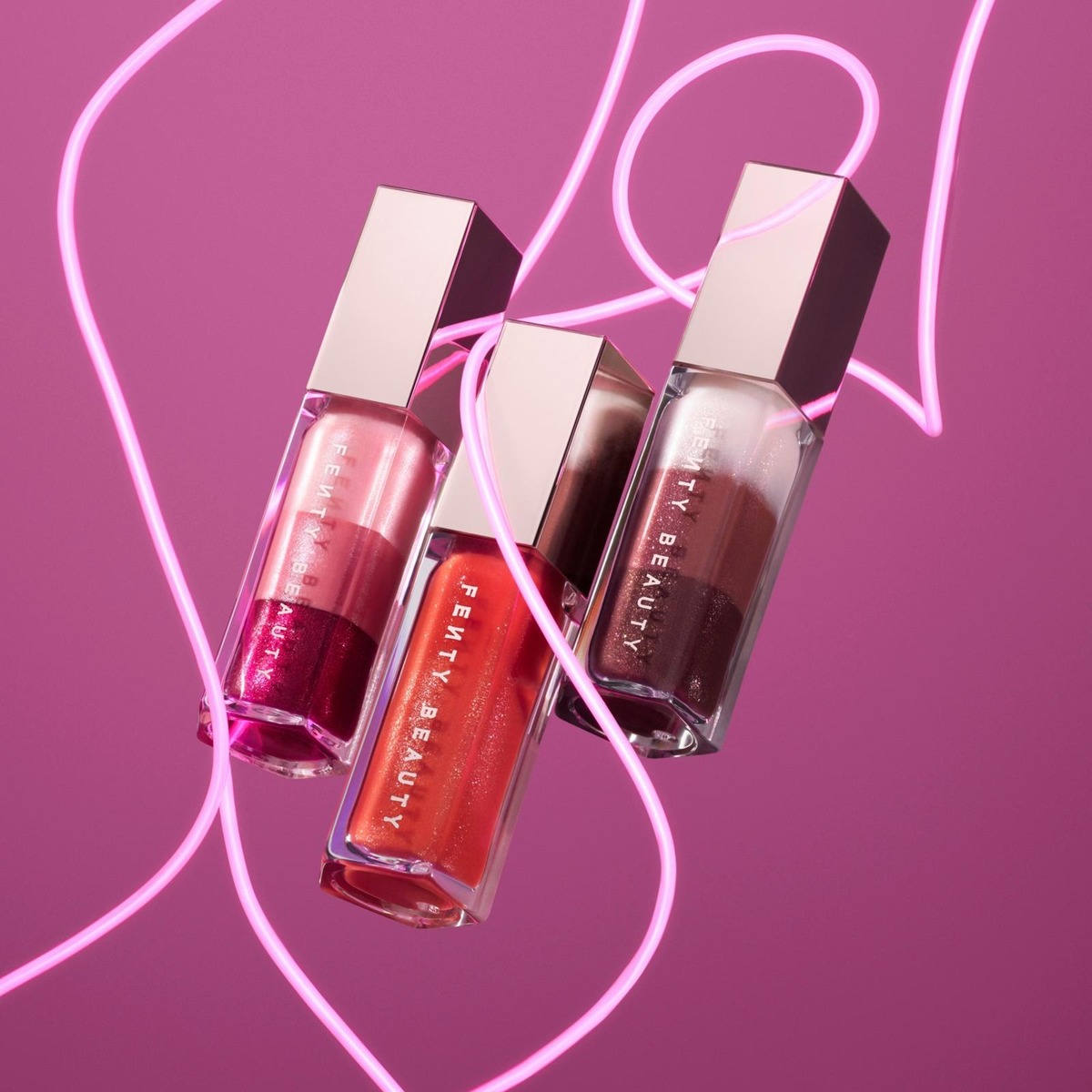 Kolmen glossin setti, jossa on uudet herkulliset sävyt fanien rakastamasta universal glossista. Sukella kahteen täysin uuteen Gloss Bomb Stackz -versioon, joissa jokaisessa on kolme kerroksellista sävyä – ja fanisuosikki Fenty Glow Fantasy tekee paluun alkuperäisessä Gloss Bomb -koostumuksessa.