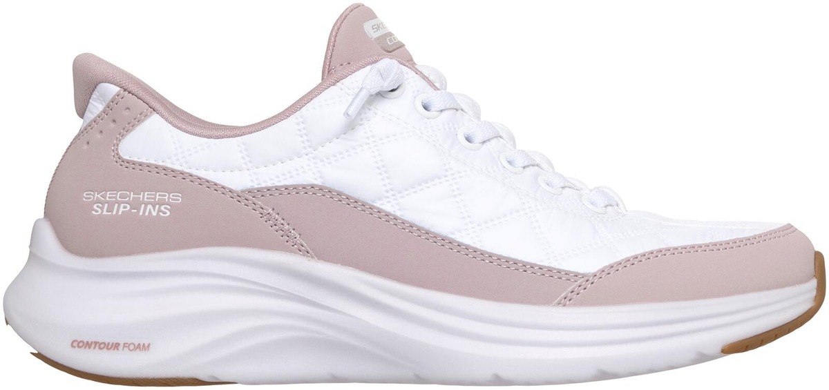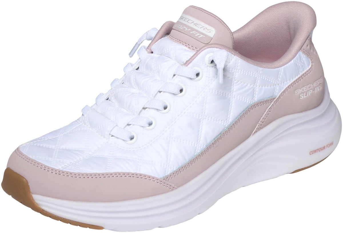 Ympäröi jalkasi vaivattomalla mukavuudella Skechers Hands Free Slip-ins® -Contour Foam™ - Cozy Fit™ kengissä. Suunniteltu yksinoikeudella varustetulla Heel Pillow™ -teknologialla, tässä slip-on-mallissa on tikattu Cozy Fit™ ja synteettinen päällinen solmituilla joustonauhoilla, Contour Foam™ -välipohjapehmuste ja tunnettu pehmustettu Skechers Air-Cooled Memory Foam® -pohjallinen.