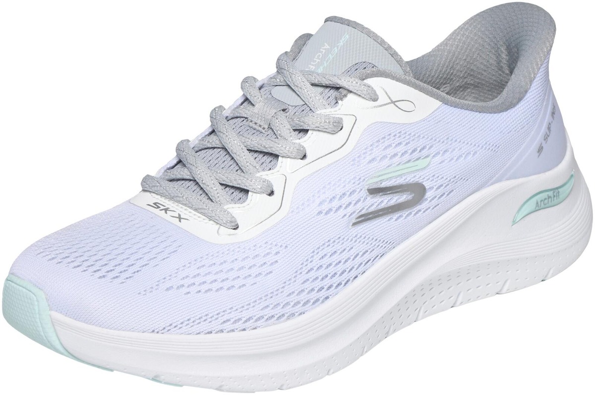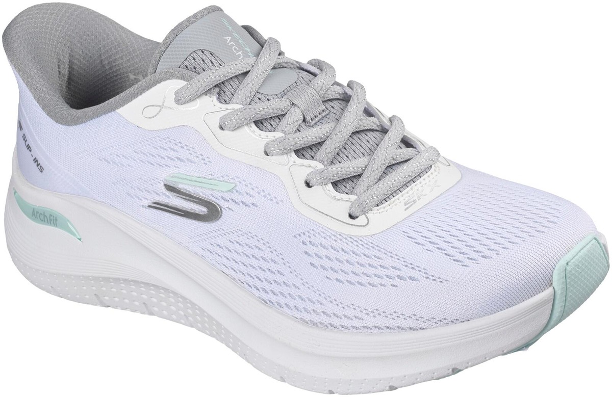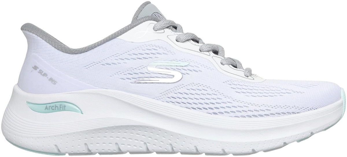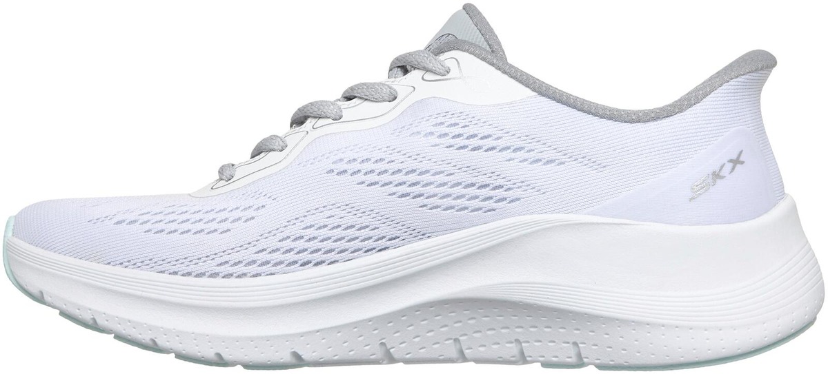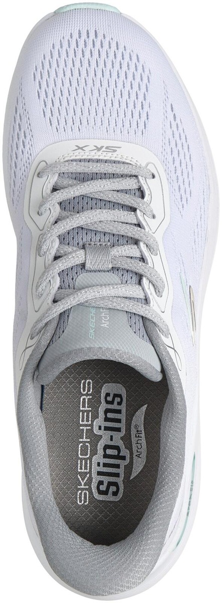 Patentoitu Skechers Arch Fit® -pohjallinen kaarituella, irrotettava pohjallinen mukautuu jalkaasi vähentäen iskuja ja lisäten painon jakautumista, konepestävä, valmistettu 100% vegaanisista materiaaleista, Skechers Hands Free Slip-ins® helppoa pukemista varten, ilmavan kevyt verkkokankainen päällinen.