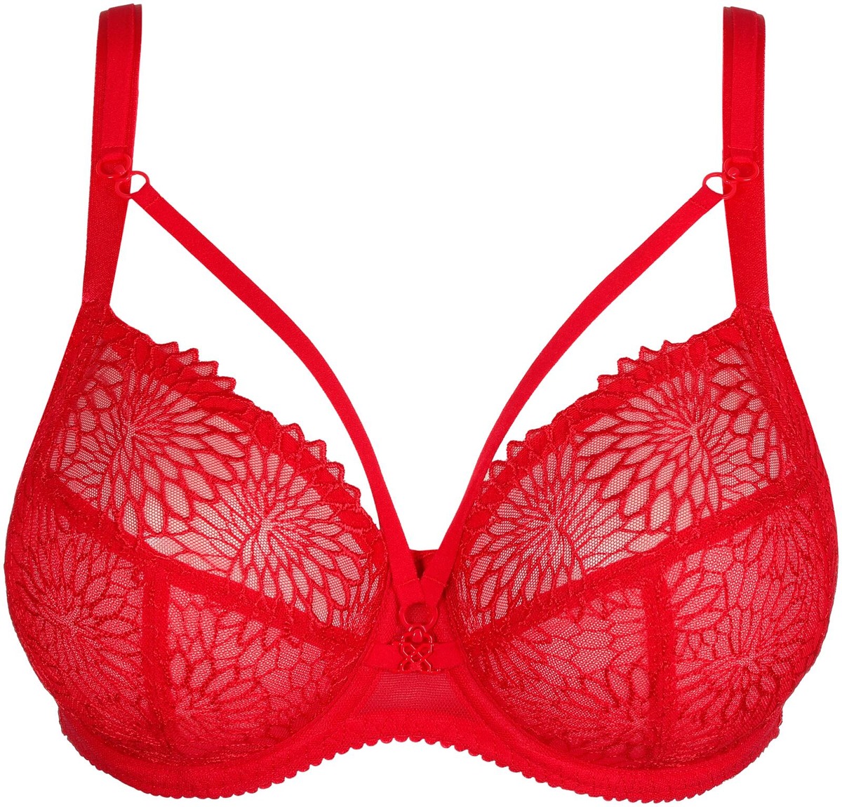 Sensuelli kokokuppinen kaariliivi, joka tukee ja muotoilee keskittäen rinnan kauniisti. Upea brodeerattu pitsi ja irroitettavat koristeolkaimet. Säkenäivä punainen, joka on kaunis ihoa vasten.