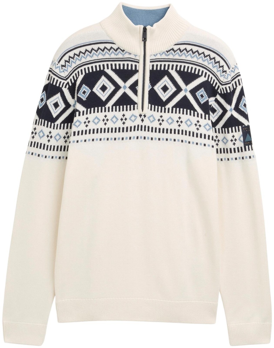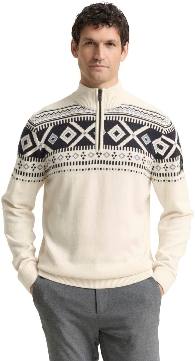 Miesten troyerneule kirjoneuletta. Kauluksessa vetoketju.