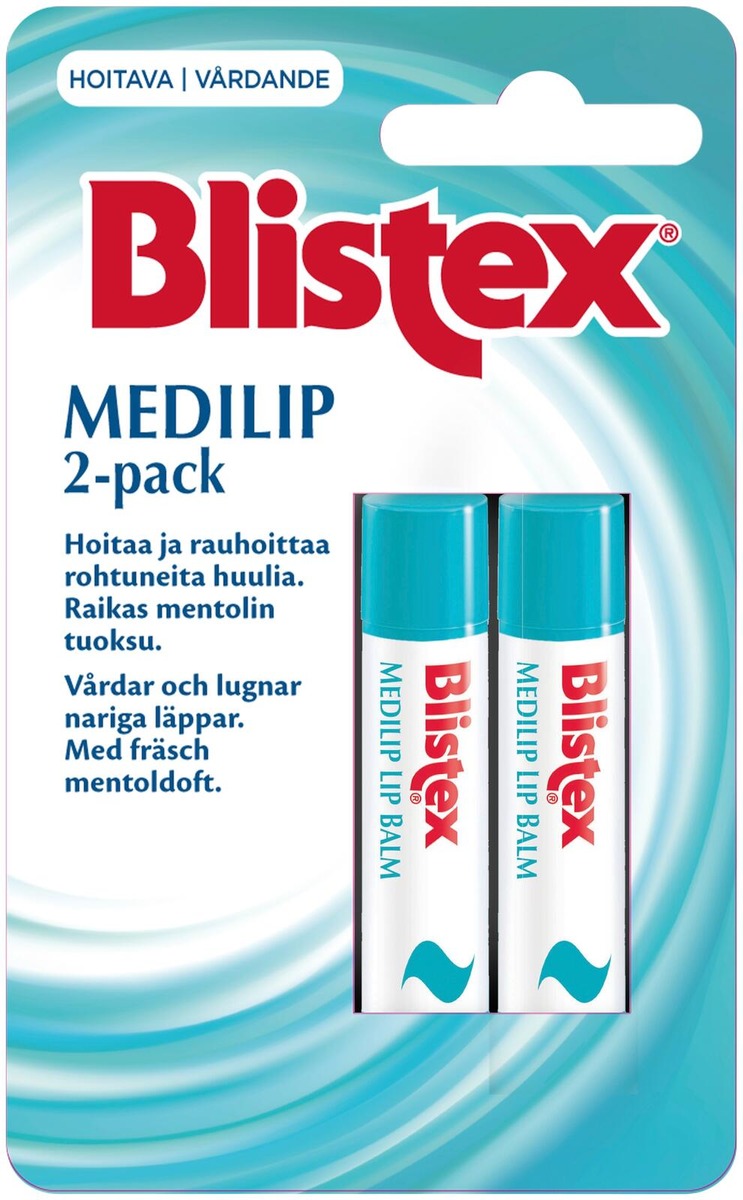 Huulivoideklassikko Blistex Medilip on suosittu pika-apu rohtuneille huulille. Medilip sisältää rahoittavaa kehäkukkaöljyä ja virkistävää eukalyptusta. A- je E-vitamiinit suojaavat ja hoitavat huulten herkkää ihoa. Raikas mentholin tuoksu. Sopii päivittäiseen käyttöön.