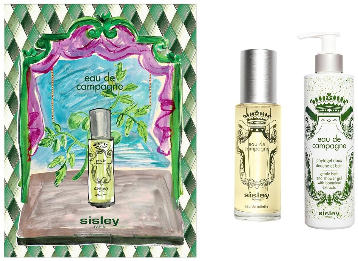 Sisleyn virkistävä Eau de Campagne -tuoksu on keskiössä tässä brittiläisen taiteilijan Luke Edward Hallin kuvittamassa lahjasetissä. Siinä on iloinen kuvitus teatterista ja tomaatinlehtien oksista, ja se tuo mieleen eau de toiletten raikkaan vihreän tuoksun. Eau de Campagne on täydellisesti tasapainossa sitrushedelmien ja ruohomaisten nuottien sekä chypre-nuotin kera. Ne herättävät hyvän olon ja eleganssin tunteen. Tämä lahjasetti sisältää 100 ml Eau de Campagne Eau de Toilettea ja 250 ml Phytogel Gentle -kylpy -ja -suihkugeeliä.