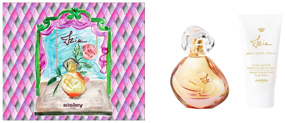 Uusin Izia-lahjasettiversio on täydellinen tilaisuus tutustua tai löytää uudelleen Izia – ilmava ja kukkainen ruusupohjainen tuoksu, jossa on hienostunut latvanuotti ja pehmeät, aistikkaat pohjanuotit. Tuoksua mukaillen brittiläisen taiteilijan ja suunnittelijan Luke Edward Hallin kuvittamassa lahjapakkauksessa on kirkkaanvärinen teatterilava ja kaunis ruusu. Izia eau de parfumissa yhdistyvät kevyt bergamotti ja kukkaissekoitus, mukaan lukien Rose d'Ornano -harmonia ja Angelica, runsaan setripuun ja myskin pohjalla. Tämä lahjasetti sisältää 30 ml Izia Eau de Parfum ja 50 ml kosteuttavaa Izia -vartalovoidetta.