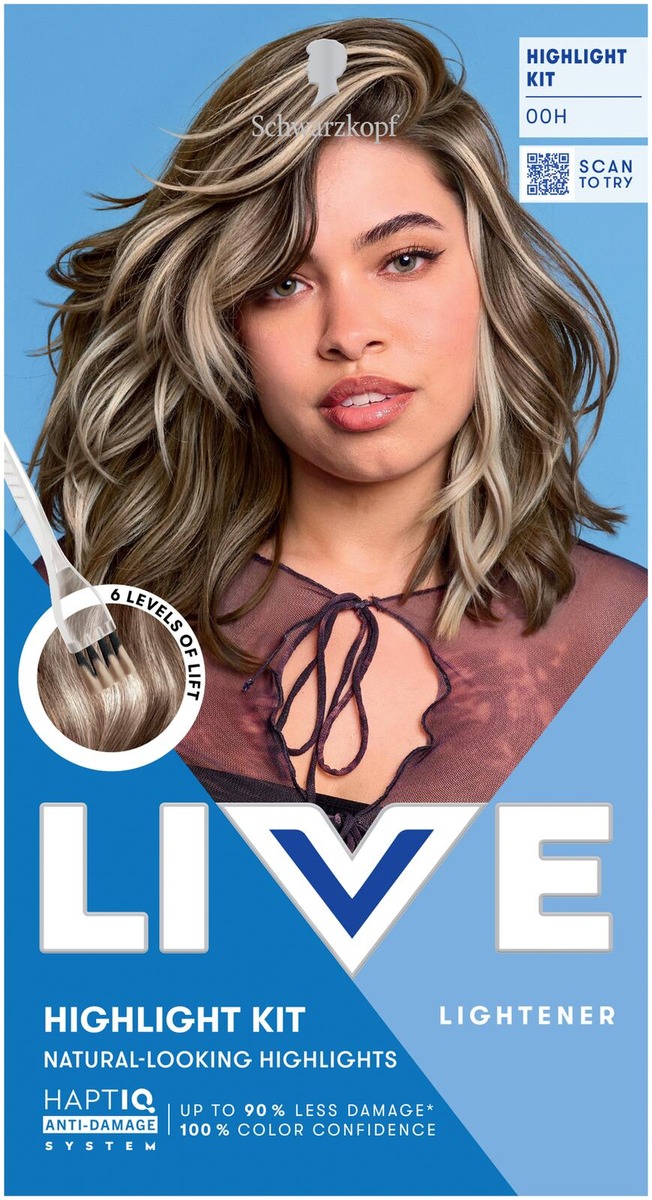 LIVE-hiusvärin Highlight Kit -vaalennusaine antaa puhtaan blondi hiusvärin ilman kellertäviä vivahteita ja vaalentaa jopa 6 astetta. Tämä valkaisutuote tarjoaa jopa 6 viikkoa puhdasta blondia hiusväriä ilman keltaisuutta. Tee raidat omalla tyylilläsi – kasvojen ympärille, etuhiuksiin, money piece -tyyliin tai peekaboo-efektinä. Käytä sävytettä jälkikäteen – viileän blondin lopputuloksen saavuttamiseksi.