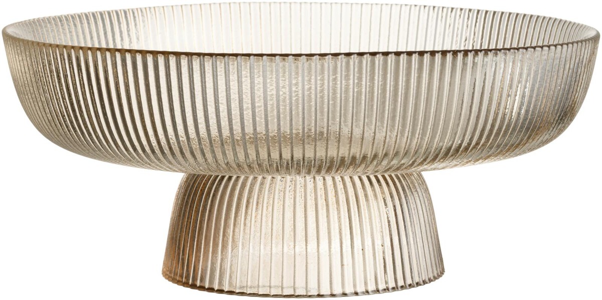 Tyylikäs jalallinen kakkulautanen kirkasta, kauniisti uritettua lasia. Soveltuu niin arki- kuin juhlakattauksiin. Halkaisija 30 cm. Käsinpesu.