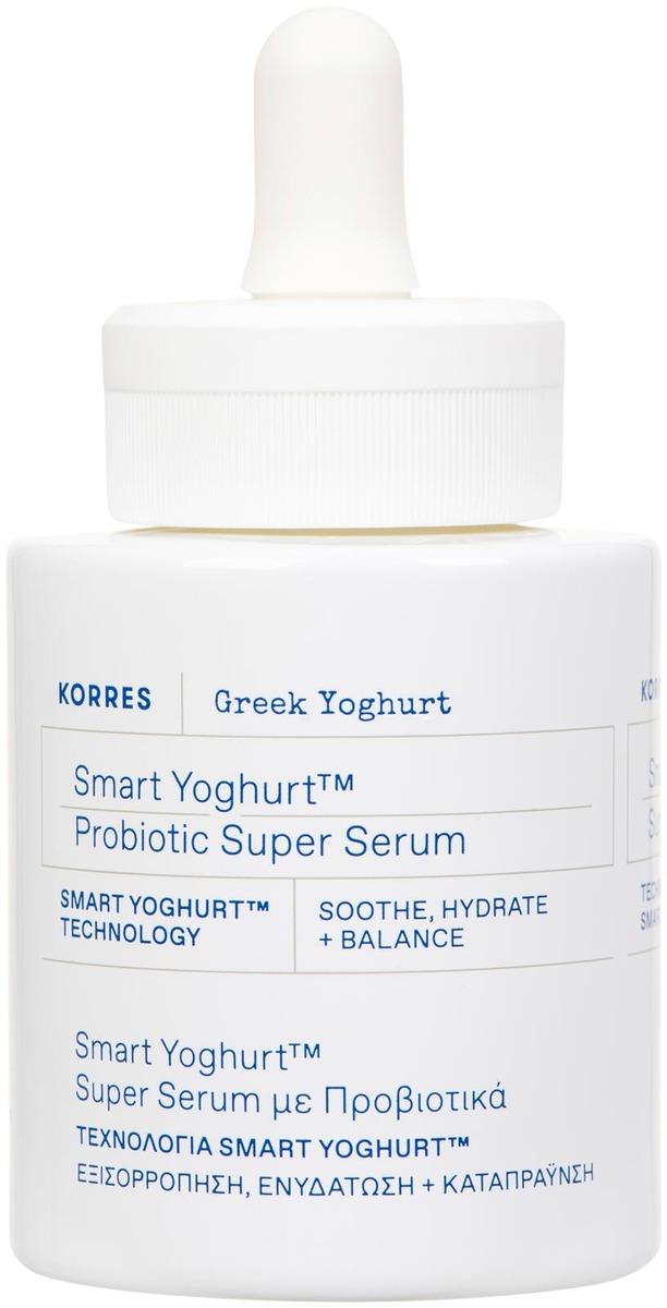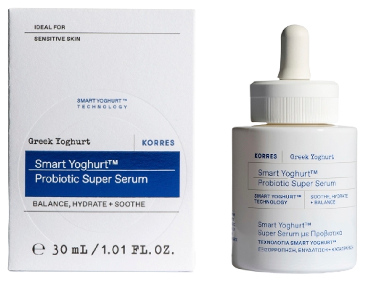 SMART YOGHURT™ -teknologia -KORRESin kehittämä edistyksellinen yhdiste, joka yhdistää aidon kreikkalaisen jogurtin pre- ja probioottisiin uutteisiin, kauramaitoon ja merilevän ravintoaineisiin. Tämä innovaatio mukautuu erilaisten ihotyyppien tarpeisiin, palauttaa tasapainon stressaantuneelle mikrobiomille ja vahvistaa ihon suojamuuria.