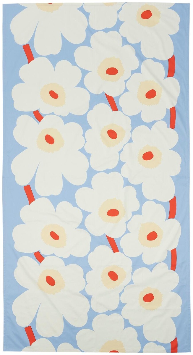 Unikko-kuosinen pöytäliina on painettu Helsingissä. Pöytäliinan reunat on viimeistelty ja ommeltu kääntöpuolelle. Tuote on valmistettu 100-prosenttisesta luomupuuvillasatiinista. Tuote pakataan Logo-kuosiseen laatikkoon. Maija Isola loi Unikko-kuvion, kuviosuunnittelun kansainvälisen ikonin, vuonna 1964. Marimekon perustaja Armi Ratia ajatteli, ettei kukkien todellista olemusta ole mahdollista vangita kuvioon. Tämän vuoksi Marimekon mallistoihin ei aiemmin kukkia kuulunut. Maija Isola suunnittelikin Unikko-kuvion pikemminkin abstraktiksi tulkinnaksi kuin fotorealistiseksi toisinnoksi kukkateemasta. Tänä päivänä Unikko on vahva ilon ja luovuuden symboli sekä tärkeä osa Marimekon designidentiteettiä.