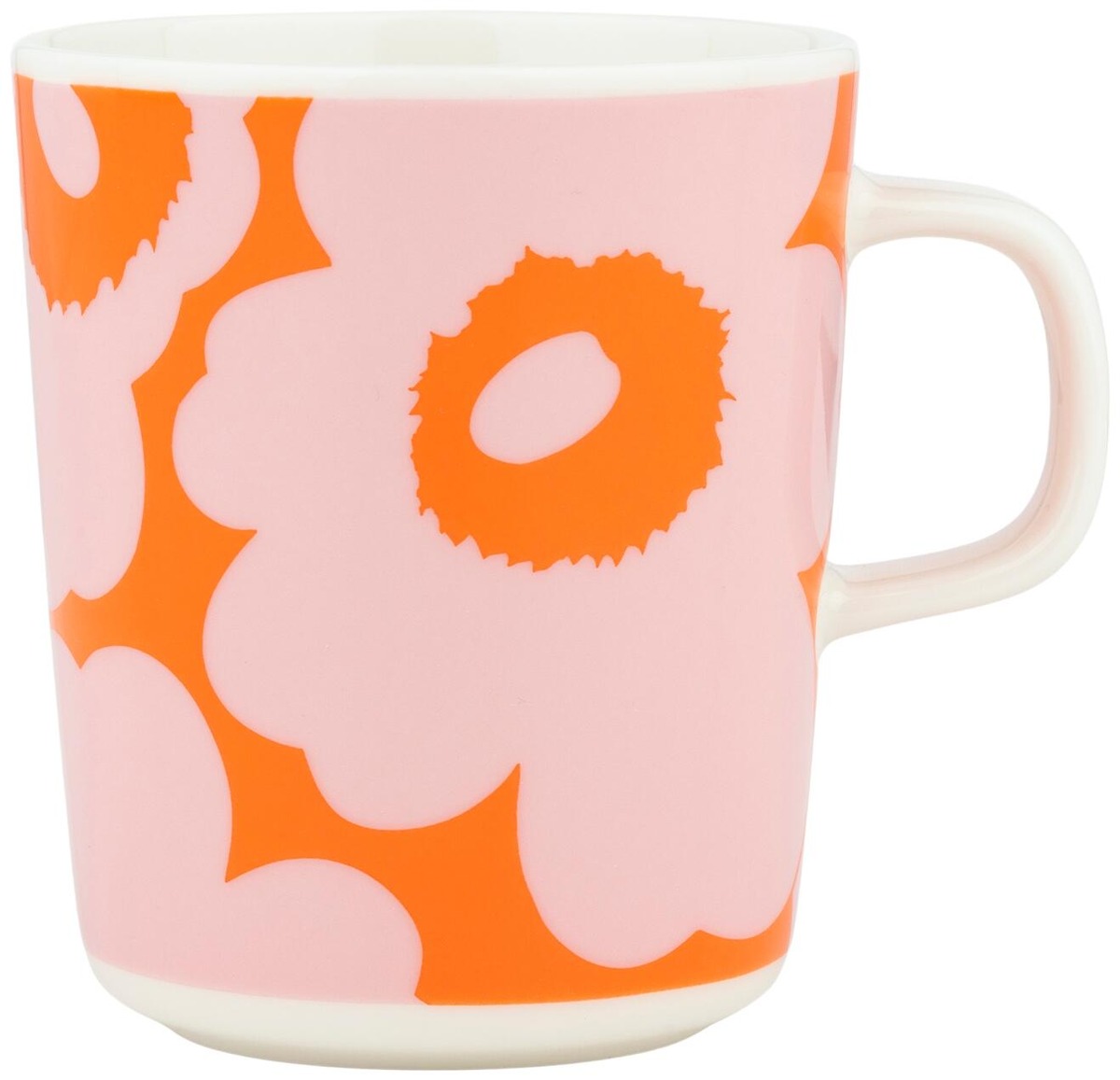 Unikko-kuosinen Oiva-muki on valmistettu konepesun, uunin, mikroaaltouunin ja pakastuksen kestävästä valkoisesta keramiikasta. Oiva-tuotteet on suunnitellut Sami Ruotsalainen. Poistathan astioiden pohjassa olevan tuotetarran ennen käyttöä. Tarra sisältää metallia. Luovuutta ja rohkeutta symboloiva Unikko syntyi aikana, jolloin Marimekon kuviomaailmaan ei juuri kuulunut kukkia. Maija Isolaa kukka-aihe kuitenkin kiinnosti, ja hän päätti suunnitella kokonaisen sarjan uudenlaisia vahvoja kukkakuoseja.