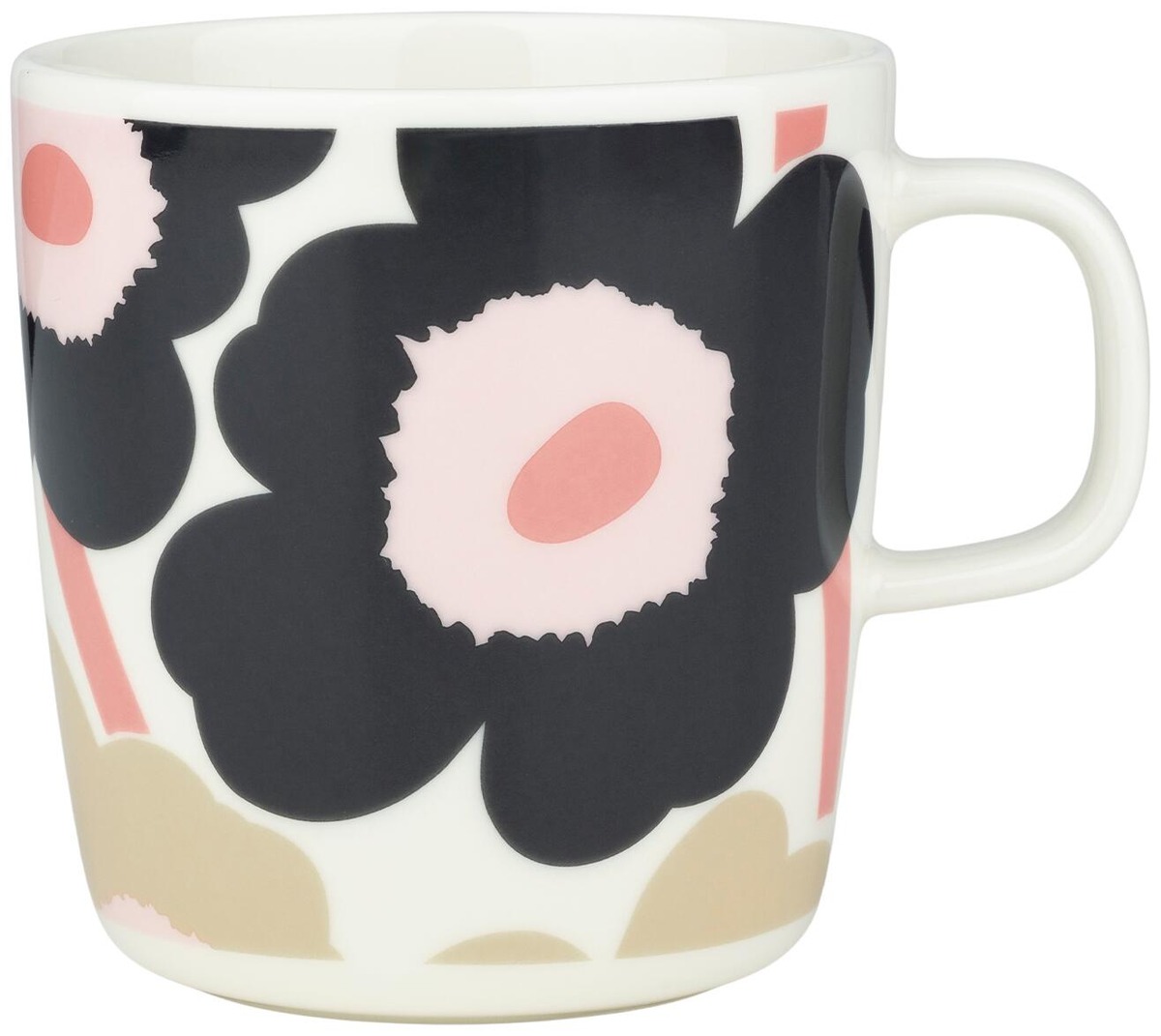 Unikko-kuosinen Oiva-muki on valmistettu konepesun, uunin, mikroaaltouunin ja pakastuksen kestävästä valkoisesta keramiikasta. Oiva-tuotteet on suunnitellut Sami Ruotsalainen. Poistathan astioiden pohjassa olevan tuotetarran ennen käyttöä. Tarra sisältää metallia. Luovuutta ja rohkeutta symboloiva Unikko syntyi aikana, jolloin Marimekon kuviomaailmaan ei juuri kuulunut kukkia. Maija Isolaa kukka-aihe kuitenkin kiinnosti, ja hän päätti suunnitella kokonaisen sarjan uudenlaisia vahvoja kukkakuoseja.