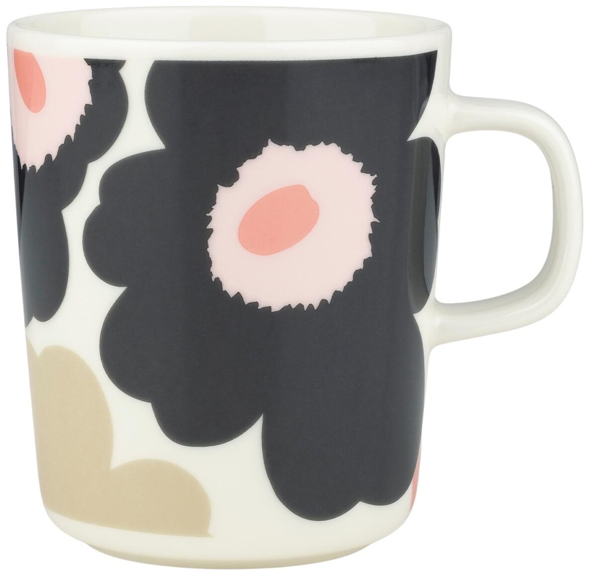 Unikko-kuosinen Oiva-muki on valmistettu konepesun, uunin, mikroaaltouunin ja pakastuksen kestävästä valkoisesta keramiikasta. Oiva-tuotteet on suunnitellut Sami Ruotsalainen. Poistathan astioiden pohjassa olevan tuotetarran ennen käyttöä. Tarra sisältää metallia. Luovuutta ja rohkeutta symboloiva Unikko syntyi aikana, jolloin Marimekon kuviomaailmaan ei juuri kuulunut kukkia. Maija Isolaa kukka-aihe kuitenkin kiinnosti, ja hän päätti suunnitella kokonaisen sarjan uudenlaisia vahvoja kukkakuoseja.
