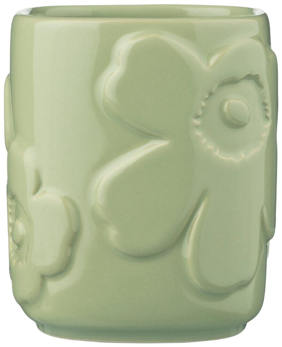 Säilyttimessä on Unikko-kohokuvio. Tuote on valmistettu keramiikasta vihreällä lasitteella. Maija Isola loi Unikko-kuvion, kuviosuunnittelun kansainvälisen ikonin, vuonna 1964. Marimekon perustaja Armi Ratia ajatteli, ettei kukkien todellista olemusta ole mahdollista vangita kuvioon. Tämän vuoksi Marimekon mallistoihin ei aiemmin kukkia kuulunut. Maija Isola suunnittelikin Unikko-kuvion pikemminkin abstraktiksi tulkinnaksi kuin fotorealistiseksi toisinnoksi kukkateemasta. Tänä päivänä Unikko on vahva ilon ja luovuuden symboli sekä tärkeä osa Marimekon designidentiteettiä.