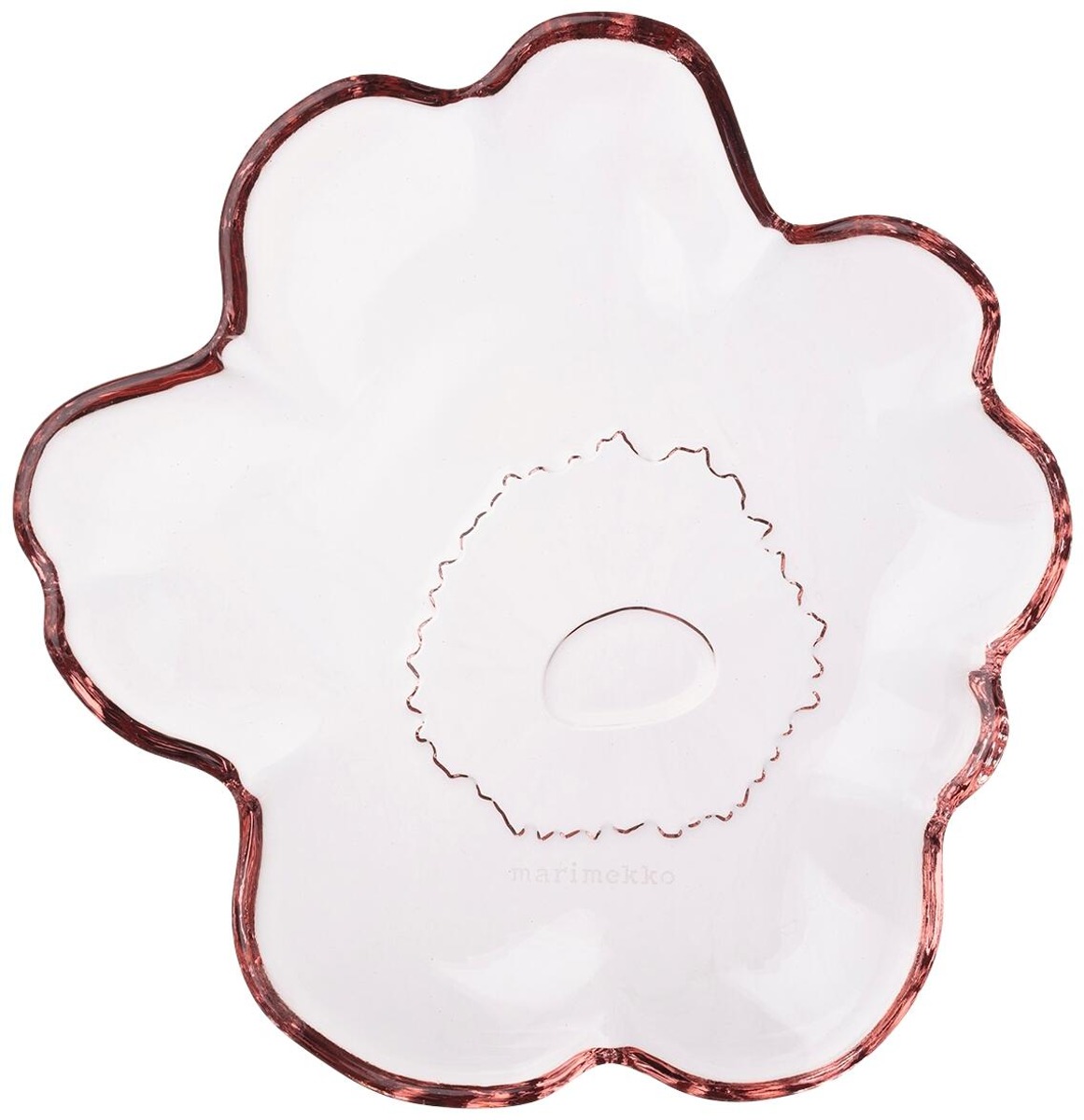 Pieni lasilautanen on valmistettu Unikko-kukan malliseksi. Suosittelemme lautaselle käsinpesua. Tuote on valmistettu vaaleanpunaisesta lasista. Tuote pakataan Logo-kuosiseen laatikkoon. Maija Isola loi Unikko-kuvion, kuviosuunnittelun kansainvälisen ikonin, vuonna 1964. Marimekon perustaja Armi Ratia ajatteli, ettei kukkien todellista olemusta ole mahdollista vangita kuvioon. Tämän vuoksi Marimekon mallistoihin ei aiemmin kukkia kuulunut. Maija Isola suunnittelikin Unikko-kuvion pikemminkin abstraktiksi tulkinnaksi kuin fotorealistiseksi toisinnoksi kukkateemasta. Tänä päivänä Unikko on vahva ilon ja luovuuden symboli sekä tärkeä osa Marimekon designidentiteettiä.