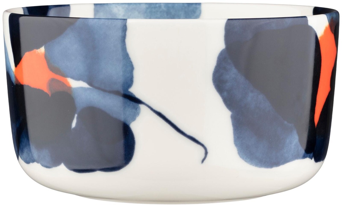Oiva-kulho Valssi-kuosilla koristettuna on valmistettu konepesun, uunin, mikroaaltouunin ja pakastuksen kestävästä valkoisesta keramiikasta. Poistathan astioiden pohjassa olevan tuotetarran ennen käyttöä. Tarra sisältää metallia. Oiva-tuotteet on suunnitellut Sami Ruotsalainen. Aina-Maija Metsola maalasi Valssi-kuvion suuret ja herkät kukat lempeän lämpimien kesäiltojen innoittamana. Kuosin läpikuultavissa terälehdissä voi aistia liikettä ja rytmiä – kuin kukkien tanssia.