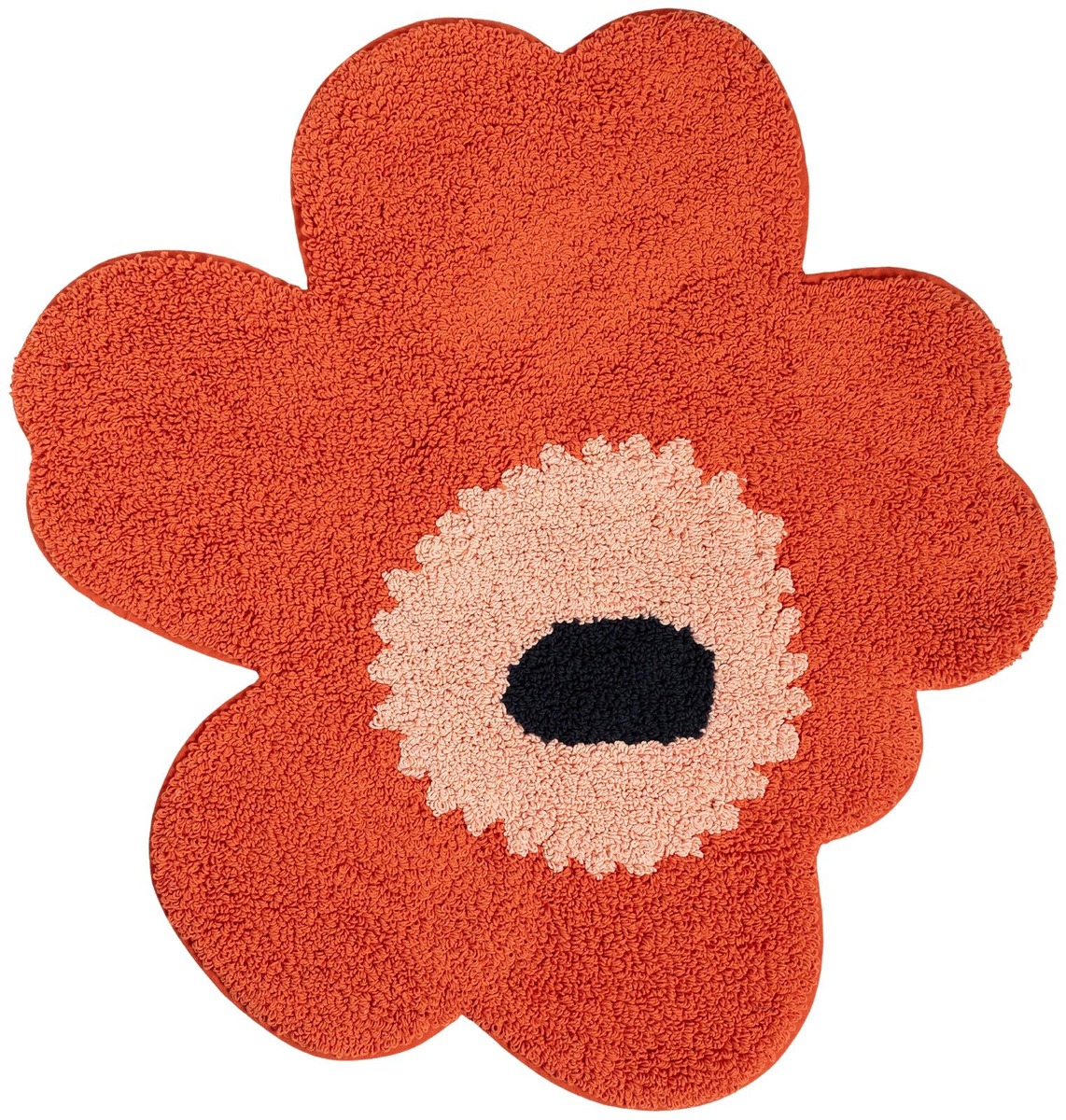 Tuftattu Unikko-kukan mallinen kylpyhuoneen matto on valmistettu 100-prosenttisesta luomupuuvillasta. Maton pehmeä tuftattu pinta ja käsin leikattu muoto tekevät jokaisesta matosta yksilöllisen, joten tuotteiden kesken saattaa ilmetä pieniä eroavaisuuksia. Maton pohjassa on liukuestekäsittely. Luovuutta ja rohkeutta symboloiva Unikko syntyi aikana, jolloin Marimekon kuviomaailmaan ei juuri kuulunut kukkia. Maija Isolaa kukka-aihe kuitenkin kiinnosti, ja hän päätti suunnitella kokonaisen sarjan uudenlaisia vahvoja kukkakuoseja.