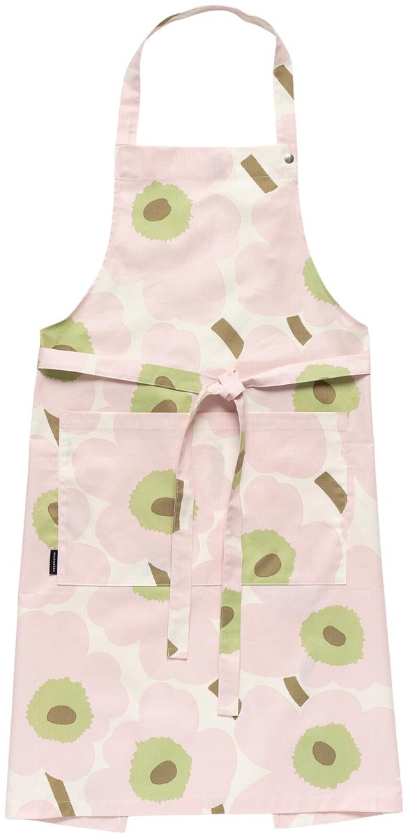Pieni Unikko -kuosinen essu on painettu Helsingissä. Essussa on etutasku sekä säädettävä kaulanauha. Tuote on valmistettu 100-prosenttisesta luomupuuvillakankaasta. Maija Isola loi Unikko-kuvion, kuviosuunnittelun kansainvälisen ikonin, vuonna 1964. Marimekon perustaja Armi Ratia ajatteli, ettei kukkien todellista olemusta ole mahdollista vangita kuvioon. Tämän vuoksi Marimekon mallistoihin ei aiemmin kukkia kuulunut. Maija Isola suunnittelikin Unikko-kuvion pikemminkin abstraktiksi tulkinnaksi kuin fotorealistiseksi toisinnoksi kukkateemasta. Tänä päivänä Unikko on vahva ilon ja luovuuden symboli sekä tärkeä osa Marimekon designidentiteettiä.