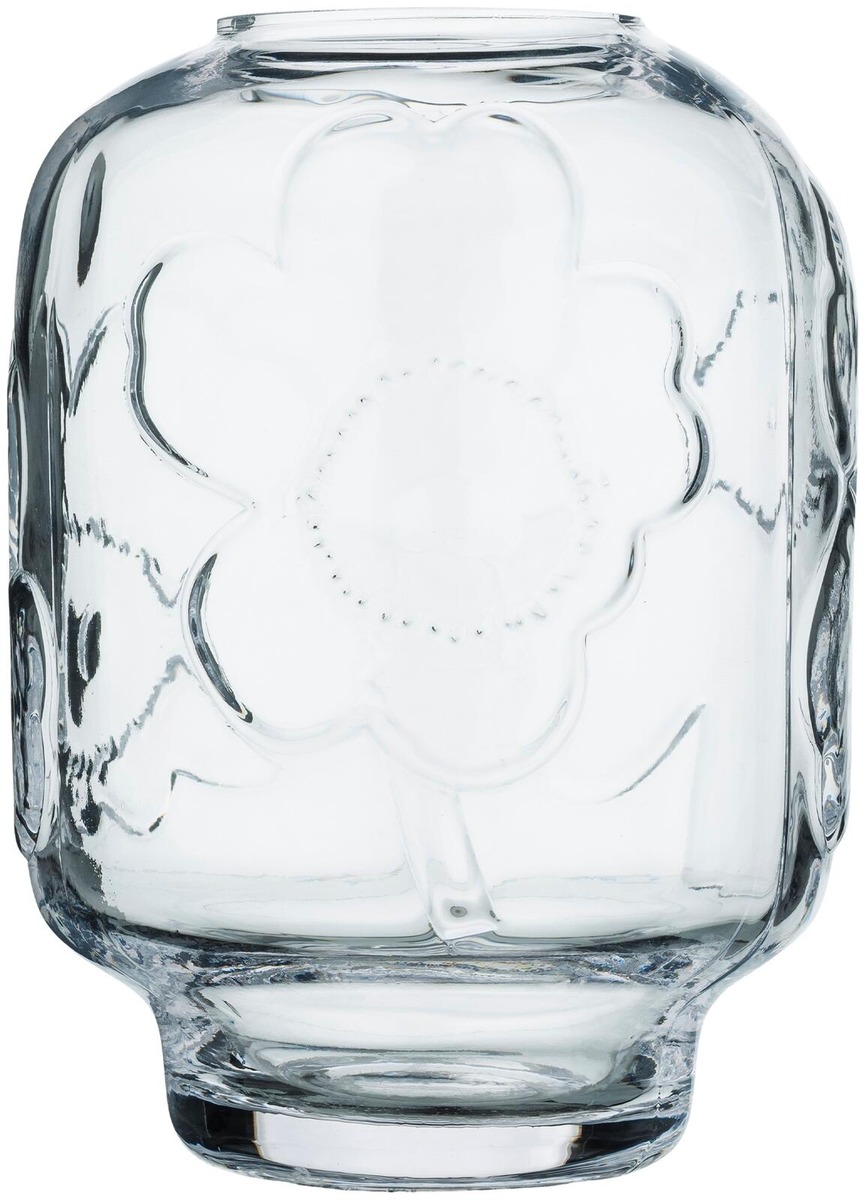 Lasimaljakossa on Unikko-kohokuvio. Suosittelemme maljakolle käsinpesua. Tuote on valmistettu suupuhalletusta kirkkaasta lasista. Tuote pakataan Logo-kuosiseen laatikkoon. Marimekon lasituotteet ovat suupuhallettua lasia. Käsityönä tehtäville lasituotteille on tyypillistä, että niissä voi esiintyä pieniä käsityön jälkiä. Tuotteiden välillä voi olla vähäisiä eroja. Maija Isola loi Unikko-kuvion, kuviosuunnittelun kansainvälisen ikonin, vuonna 1964. Marimekon perustaja Armi Ratia ajatteli, ettei kukkien todellista olemusta ole mahdollista vangita kuvioon. Tämän vuoksi Marimekon mallistoihin ei aiemmin kukkia kuulunut. Maija Isola suunnittelikin Unikko-kuvion pikemminkin abstraktiksi tulkinnaksi kuin fotorealistiseksi toisinnoksi kukkateemasta. Tänä päivänä Unikko on vahva ilon ja luovuuden symboli sekä tärkeä osa Marimekon designidentiteettiä.