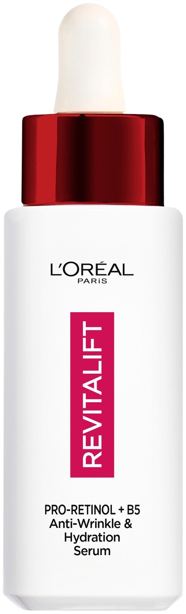L'Oréal Paris Revitalift Anti-Wrinkle & Hydration on kosteuttava seerumi ryppyjä vastaan, joka on kehitetty erityisesti herkälle iholle. Kosteuttava seerumi vahvistaa ihon suojamuuria ja vaikuttaa tehokkaasti ikääntymisen merkkeihin, kuten ryppyihin ja joustavuuden vähenemiseen. Koostumus sisältää vaikuttavia ihonhoitoaineilla, kuten pro-retinolia, elastipeptideiä ja B5-vitamiinia,