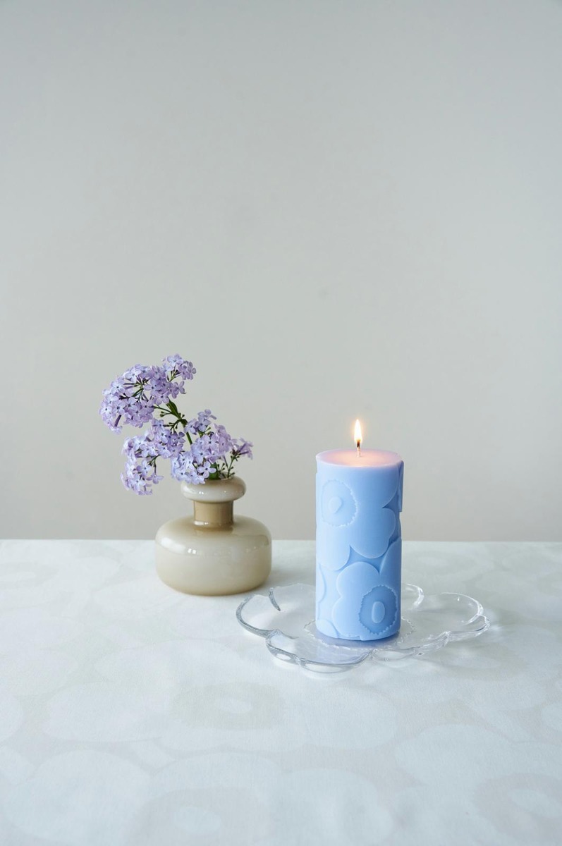 Marimekko Unikko vaaleansininen pöytäkynttilä 1kpl/6,5x14cm