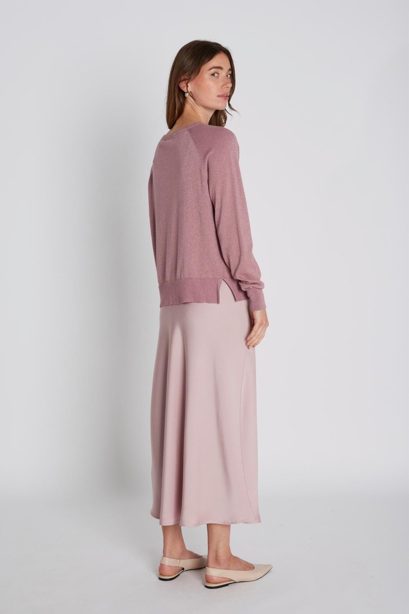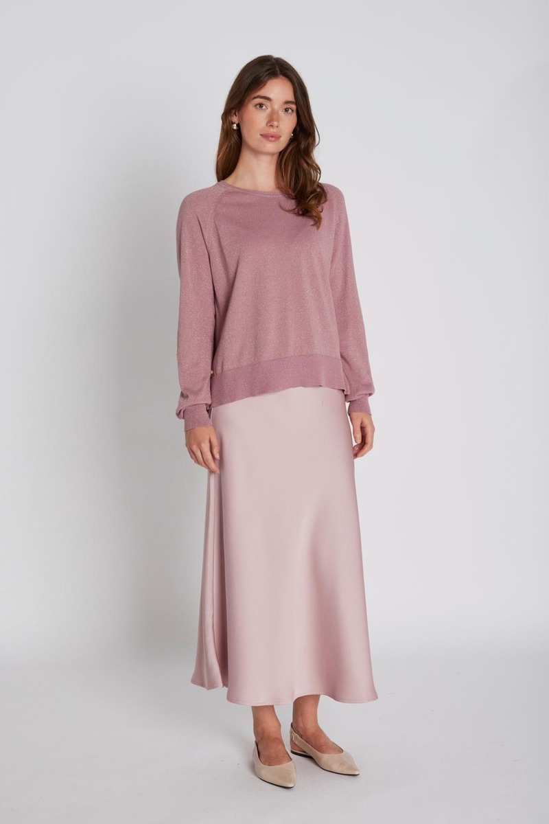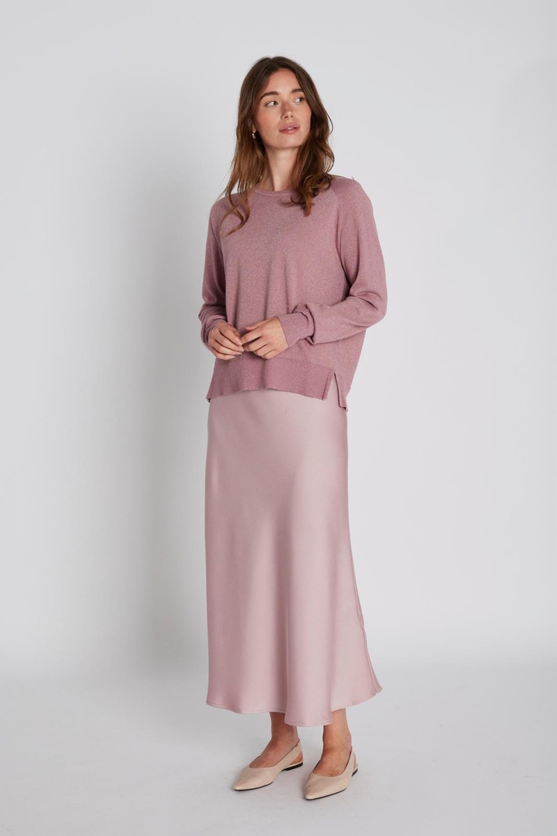 Kauniisti laskeutuva pitkä hame kuminauhavyötäröllä.