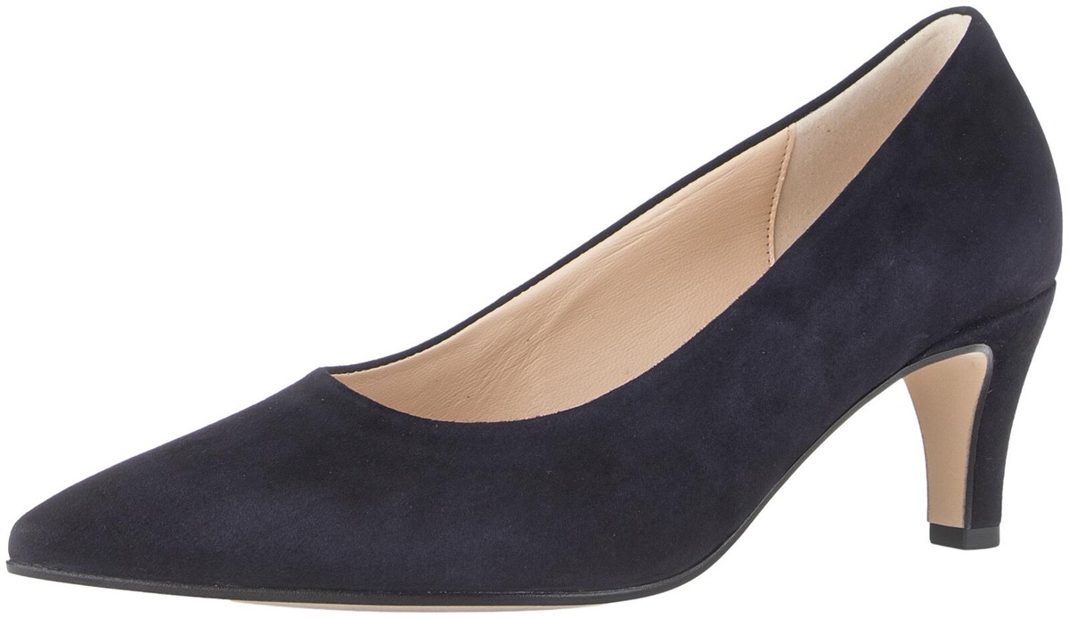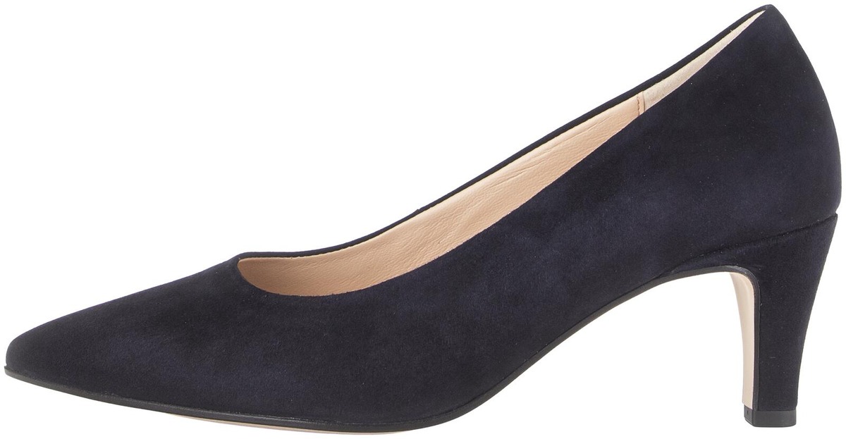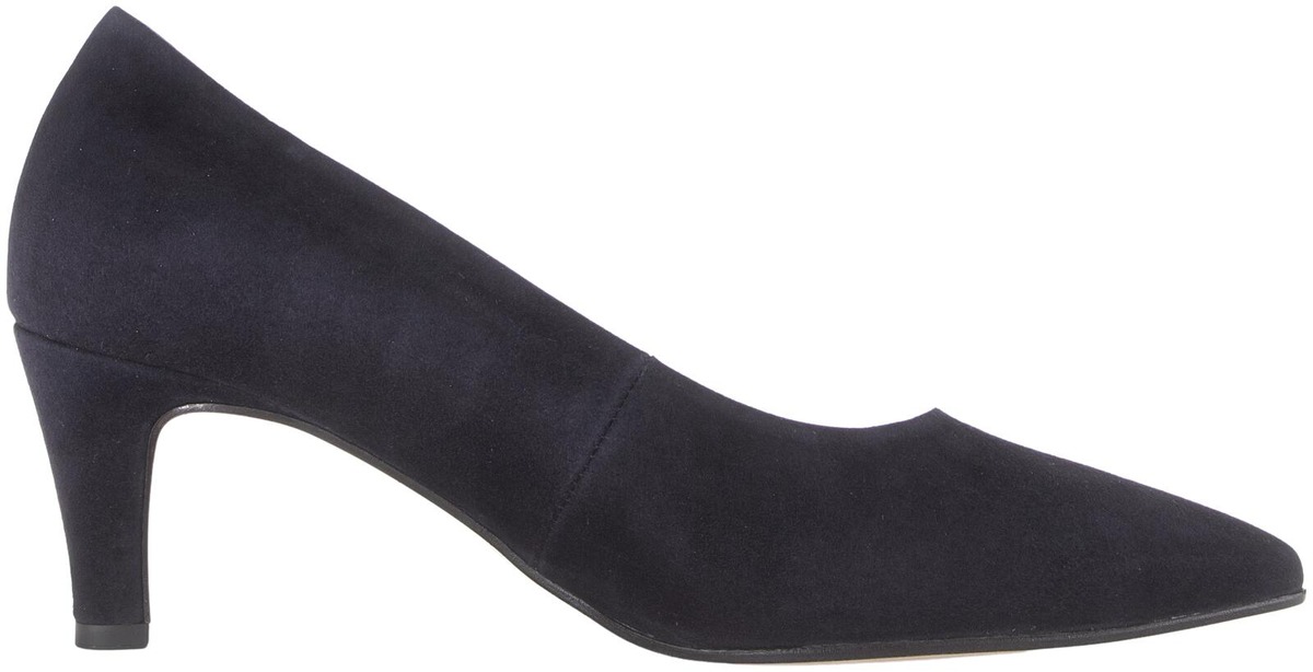 Tyylikkään tummansiniset mokkanahkaiset avokkaat kapealla 6 cm stilettokorolla. Vaikka kengissä on trendikäs kapeneva kärki, hieman laajempi G-lesti antaa jalalle tilaa.