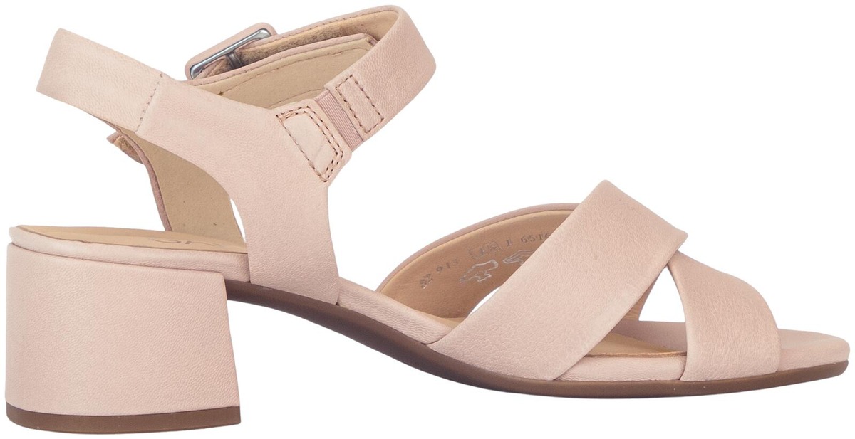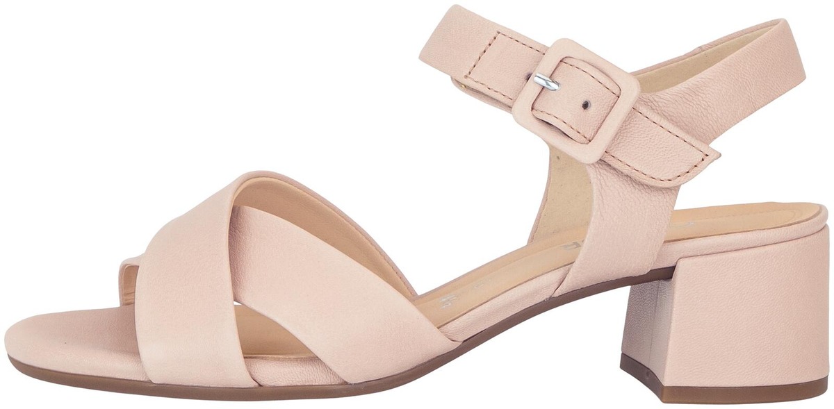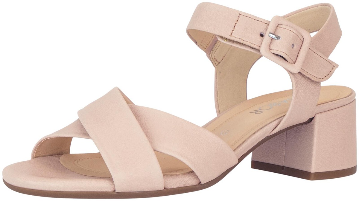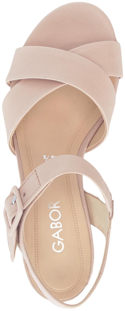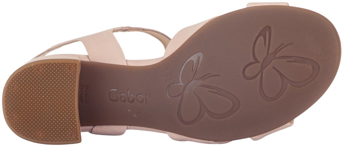 Naisten Gabor sandaletit tukevalla 4 cm päällystetyllä korolla, koristesoljella ja kätevällä tarrakiinnityksellä. Hieman leveämpi G-lesti antaa jalalle tilaa olla mukavasti, vaikkapa kesän juhlissa.