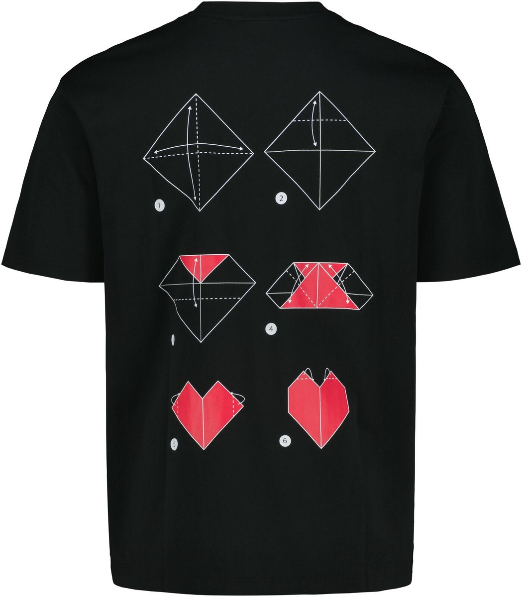 Arvelin, että tuote on tavallinen t-paita sydänkuviolla. Mutta oli yllätys, että t-paidan selkäpuolen ohjeella voi taitella samanlaisen sydänkuvion mistä materiaalista haluaa. Hauska juttu!