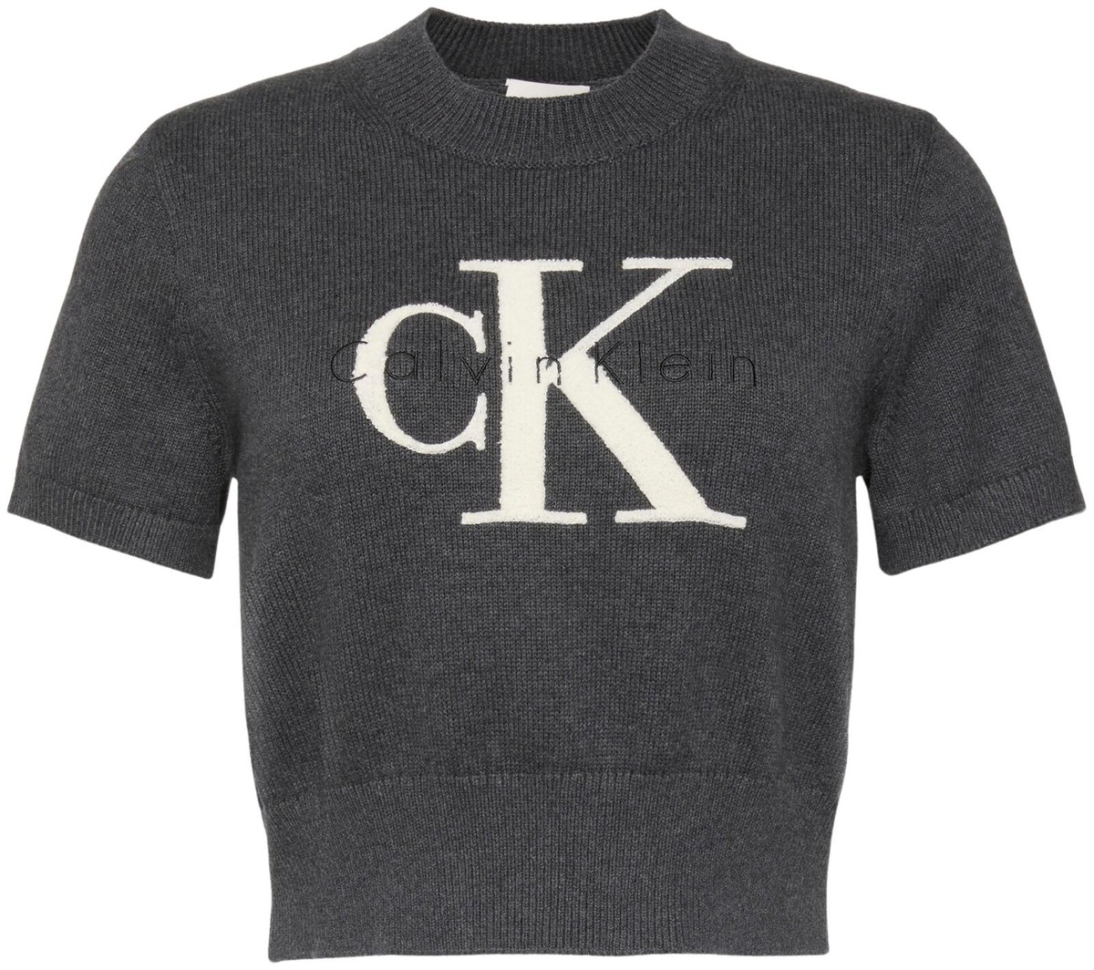 cK -klassikko, puuvillaneule jossa näyttävä logo edessä ja lyhyet hihat, yhdistä esimerkiksi mustien barrel-farkkujen kanssa