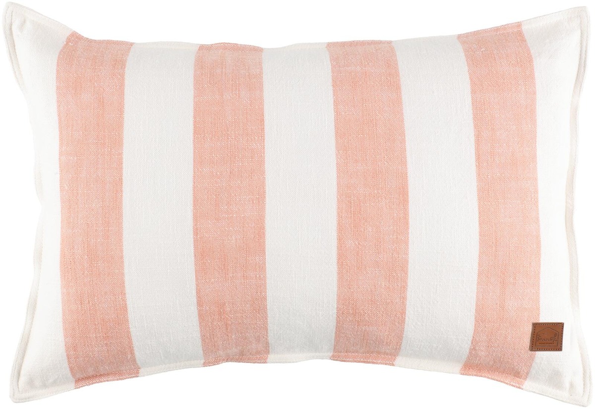 Fanni K Hanko-tyynyn klassinen ja kaunis kudottu raitakangas on raikas ja aina ajankohtainen. Materiaali: irrotettava päällinen 100 % puuvilla ja täyte polyesteria. Koko: 60 x 40 cm, paksuus 10 cm. Väri persikka-valkoinen. Vesipesu 40 astetta. Ökotex.