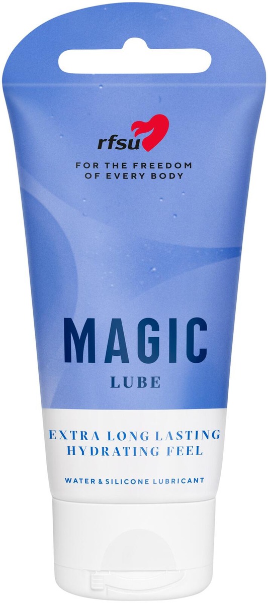 RFSU Magic Lube on pehmeä ja hellä hybridiliukuvoide, jonka liukuva vaikutus kestää pitkään ja hoitava tunne pysyy iholla. Sen koostumus on suunniteltu tarjoamaan sileä ja miellyttävä kokemus, ilman että liukuvoidetta tarvitsee lisätä uudelleen. Sen silkkinen koostumus luo suojakerroksen, joka vähentää kitkaa ja lisää mukavuutta kaikenlaisten intiimien hetkien aikana. Magic Lube sopii erityisesti niille, joilla on kuivuutta tai herkkyyttä intiimialueella ja jotka haluavat liukuvoiteen, joka tuntuu hyvältä ja on pitkäkestoinen. Magic Lube on gynekologisesti testattu ja hajusteeton. 100 % vegaaninen ja The Vegan Societyn sertifioima.