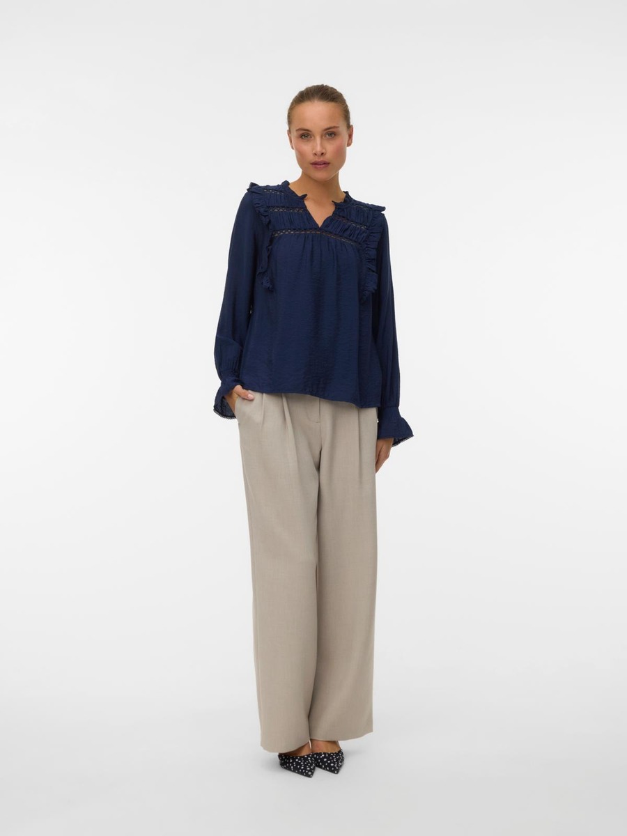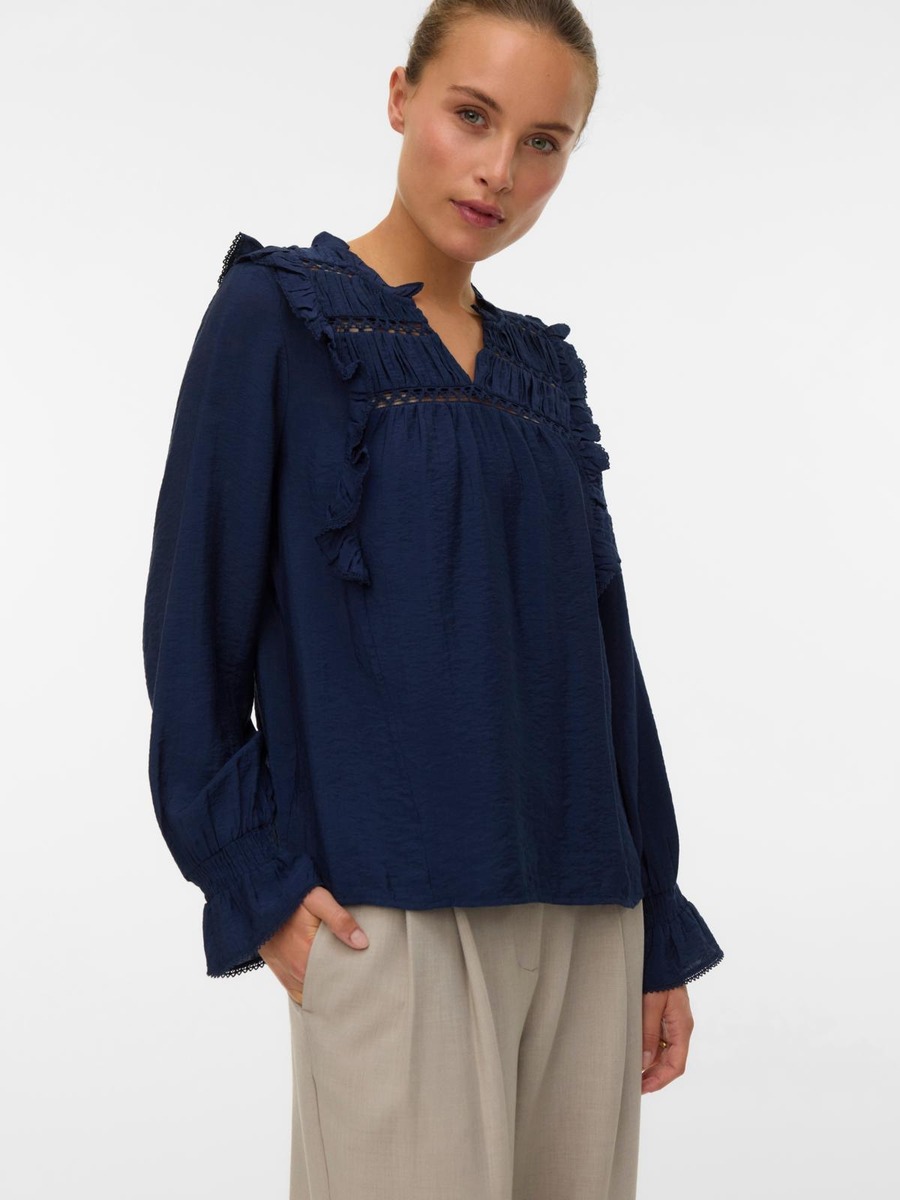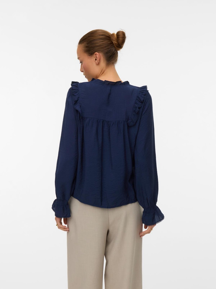 Kaunis pitkähihainen frilloilla ja V-pääntiellä.