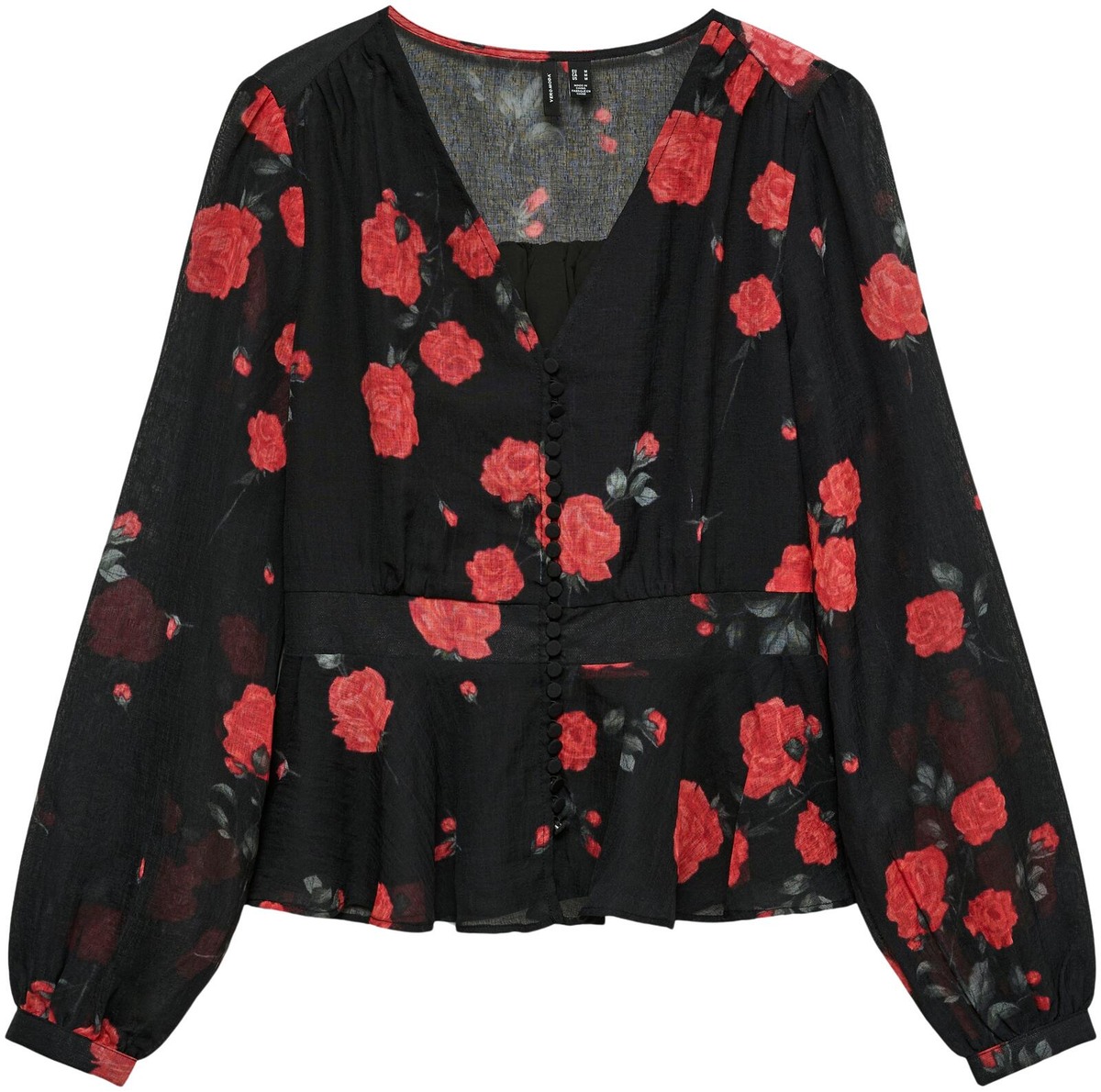 Pitkähihainen pusero V-pääntiellä ja muodikkalla ruusukuvioinnilla.