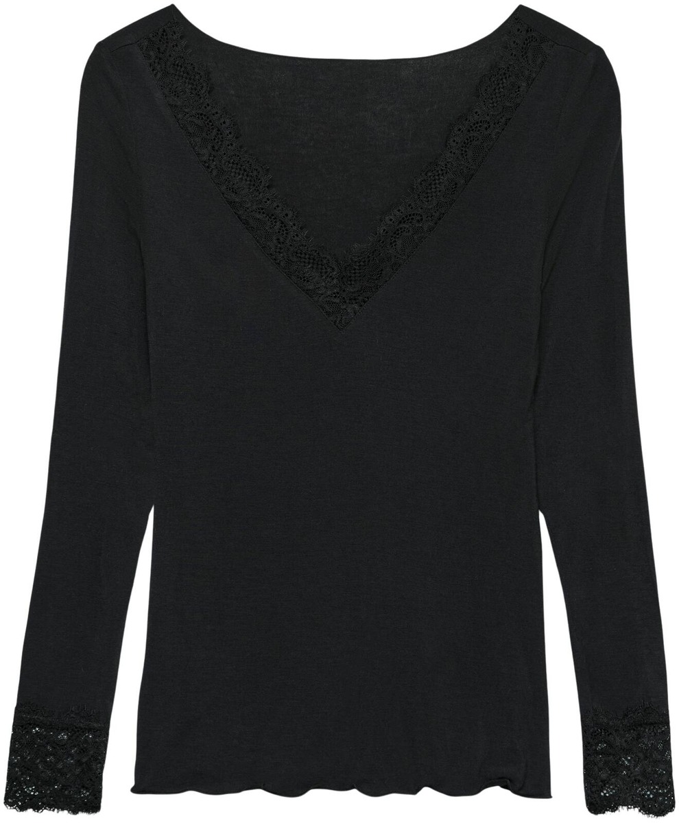 Pitkähihainen trikoopusero pitsiyksityiskohdilla.