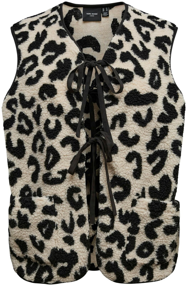 Ihanan pehmeä fleeceliivi leopardikuosilla. Edessä solmittavat nauhat.