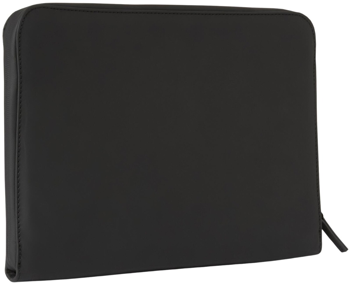 GUSTAV-läppärikotelo on tyylikäs ja käytännöllinen valinta, joka suojaa laitteesi arjen haasteilta. Vettä hylkivästä polyuretaanista valmistettu kotelo suljetaan kaksoisvetoketjulla, jonka hitsatut saumat lisäävät kestävyyttä ja suojaa. Sisäpuolella oleva kortholderi pitää tärkeät kortit kätevästi tallessa, ja ulkopuolella oleva avoin tasku tarjoaa nopean pääsyn pieniin tarvikkeisiin. Läppäri pysyy tukevasti paikoillaan kulmissa olevien joustavien nauhojen ansiosta. Kotelo on vuorattu polyesterillä ja se on helppo yhdistää muihin saman sarjan laukkuihin. Mitat: leveys 34 cm, korkeus 24 cm.