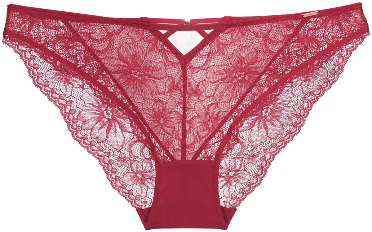 Tunne olosi naiselliseksi ja moderniksi Jemma-alushousuissa. Takana ristikkäinen elastinen yksityiskohta ruusukullan sävyisillä koristeilla