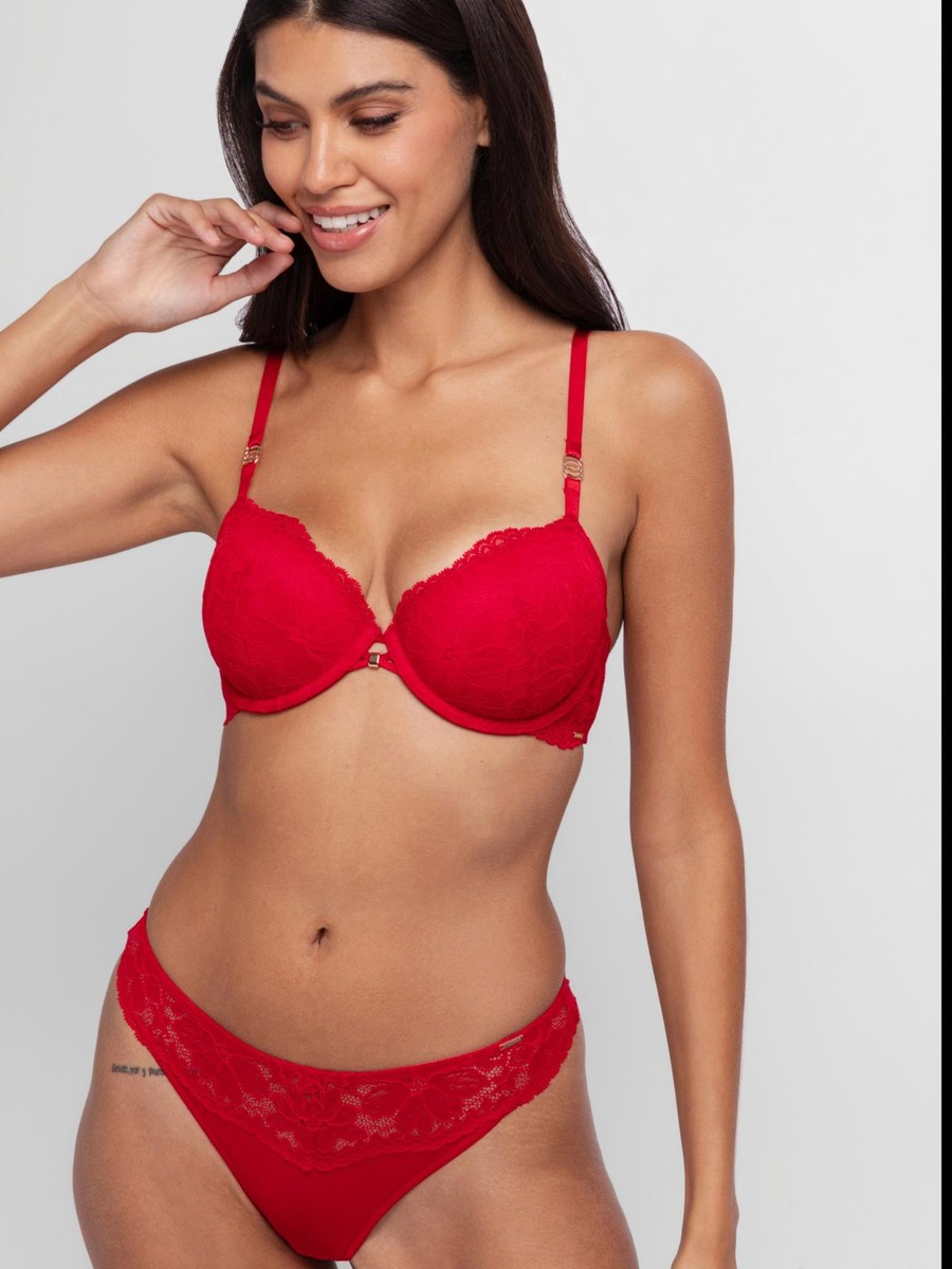 Naisellinen ja moderni Jemma stringit yhdistävät herkän pitsin ja mesh-materiaalin minimalistiseen string-leikkaukseen, luoden aistikkaan ilmeen. Selkäosassa on ristikkäisiä elastisia nauhoja ja ruusukultaisia yksityiskohtia.