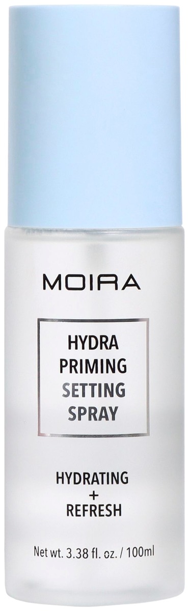 MOIRA Hydra Priming Setting Spray on kevyt, hienojakoinen meikinkiinnityssuihke, joka antaa luonnollisen säteilevän lopputuloksen, valmistelee ja virkistää ihoa toimien samalla näkymättömänä kerroksena, joka kiinnittää meikin paikoilleen koko päiväksi. Kurkku-uutetta, aloe veraa ja Pentavitinia sisältävä suihke kosteuttaa ihoa välittömästi täydellisen hehkuvan lopputuloksen aikaansaamiseksi.