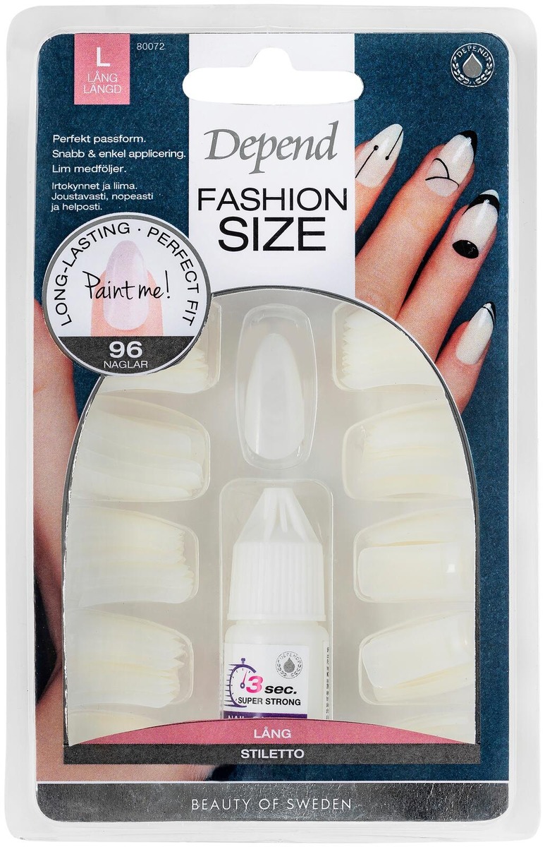 Fashion Size tekokynnet, antaa täydellisen istuvuuden, koska pinta on erittäin ohut ja joustava kynsinauhan ympärillä. Kynsi antaa luonnollisen vaikutelman. Malli voi olla french look, värjäämätön tai kuviollinen kulloisenkin tilanteen mukaan. Yksinkertainen kiinnittää liimalla, kiiltävä pinta ja kestävä rakenne.
