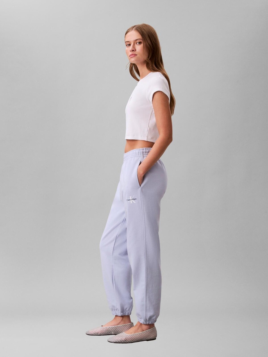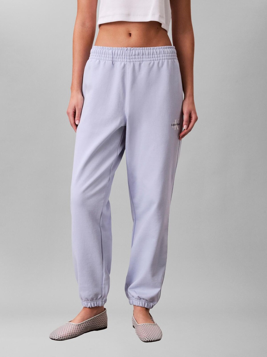 Ajattomat joggerit joissa pehmeä collegelaatu, edessä pieni logo, ja sivuilla taskut