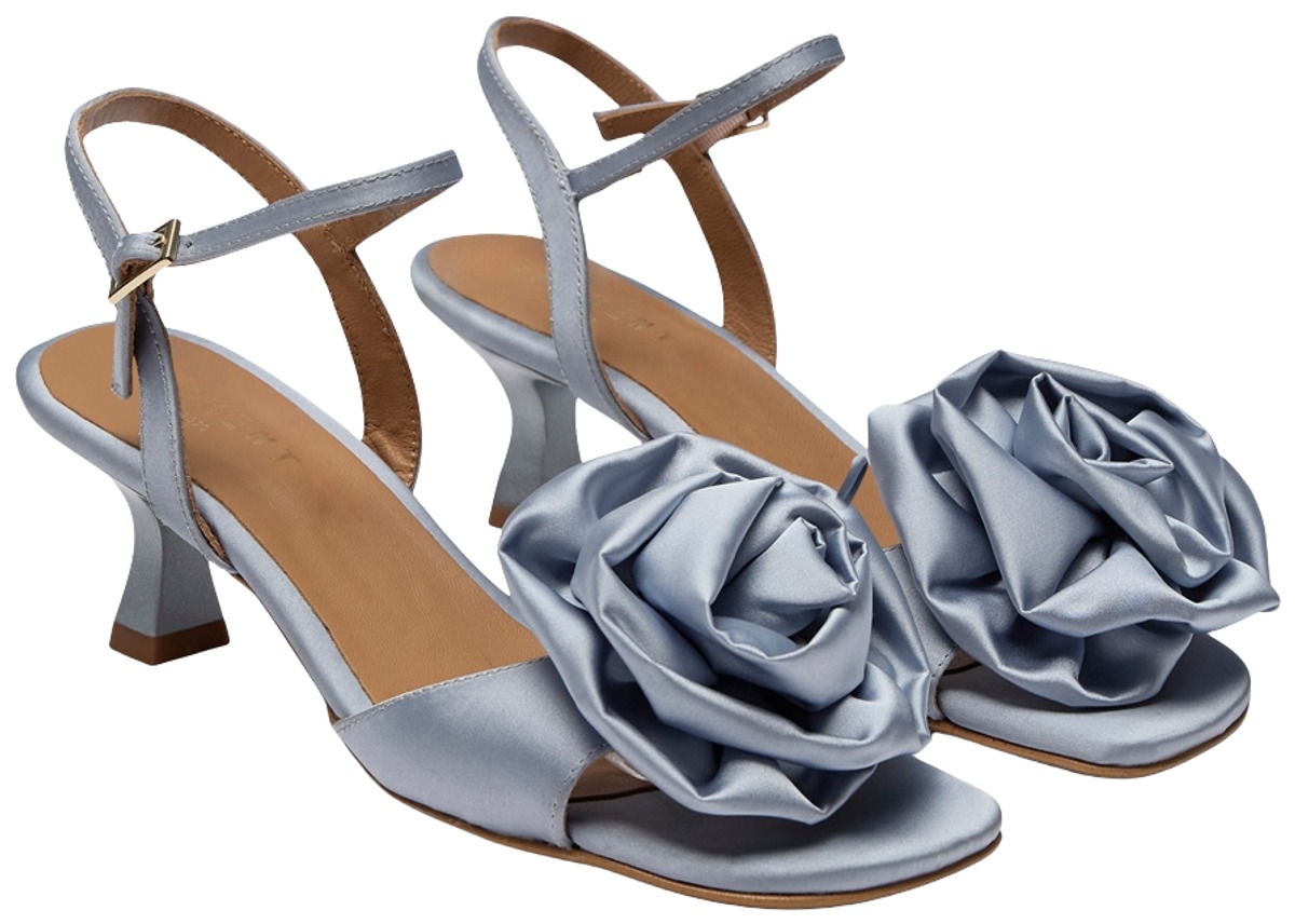 Käsintehtdyt satiiniset korkokengät Portugalista. Kierrätetystä kumista valmistettu ulkopohja.