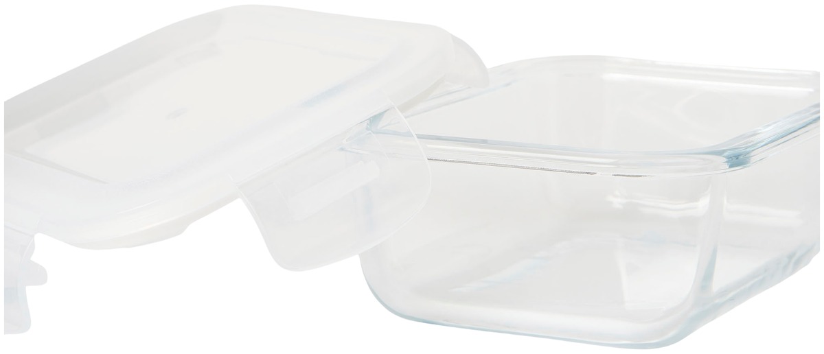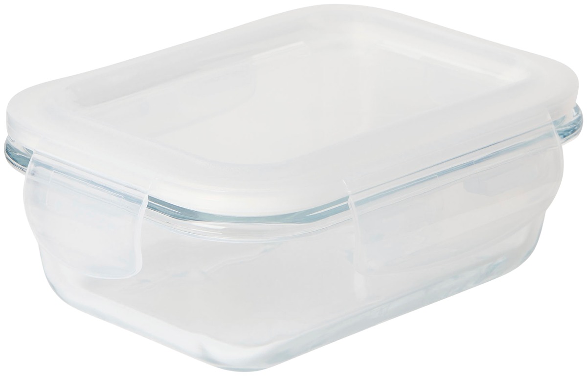 Säilytysrasia kestävästä borosilikaattilasista – pitää ruoan tuoreena pitkään. Kansi on varustettu silikonireunalla ja tiiviisti sulkevilla siivekkeillä, jotka estävät vuotamisen. Rasia soveltuu myös tarjoiluun ja kestää konepesun, mikroaaltouunin ja pakastamisen.
