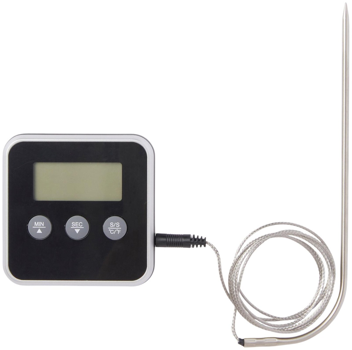 Digitaalisessa lämpömittarissa on LCD-näyttö, lihatikku, ajastintoiminto ja äänimerkki, joka ilmoittaa, kun asetettu aika tai haluttu lämpötila on saavutettu. Sopii erinomaisesti lihan kypsyyden tarkkailuun ja tarkkaan ajastukseen keittiössä. Laite tekee ruoanlaitosta vaivattomampaa ja varmistaa täydellisen lopputuloksen.